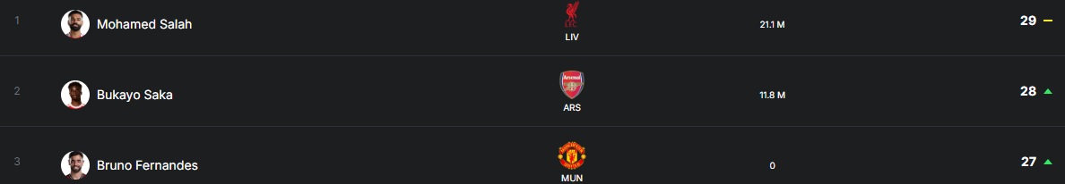 -25+ голов и 25+ ассистов - Сака и Салах;