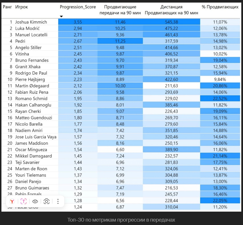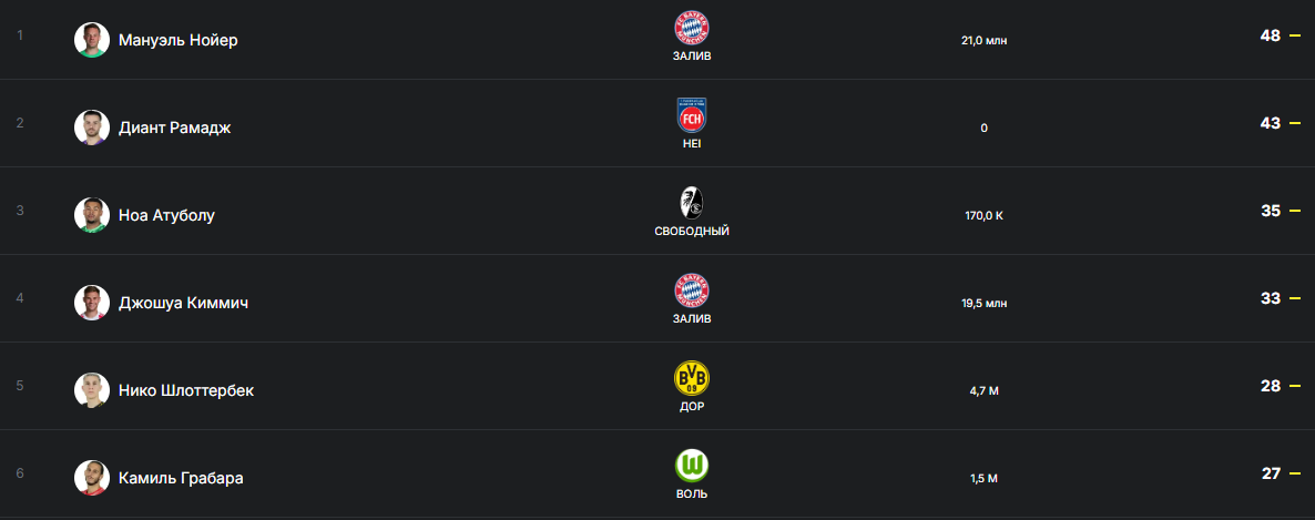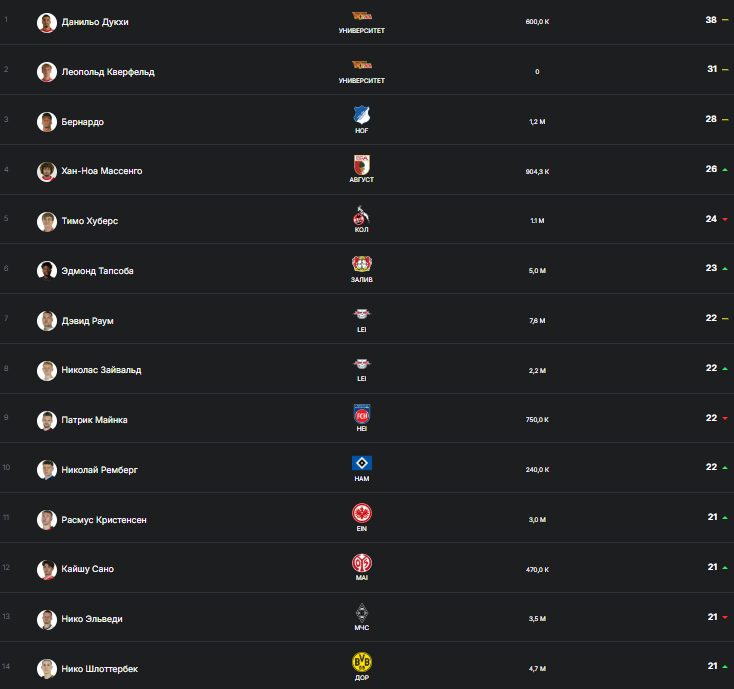 А это топ Бундеслиги по диагоналям за сезон. Убрать вратарей и Нико второй после Киммиха.