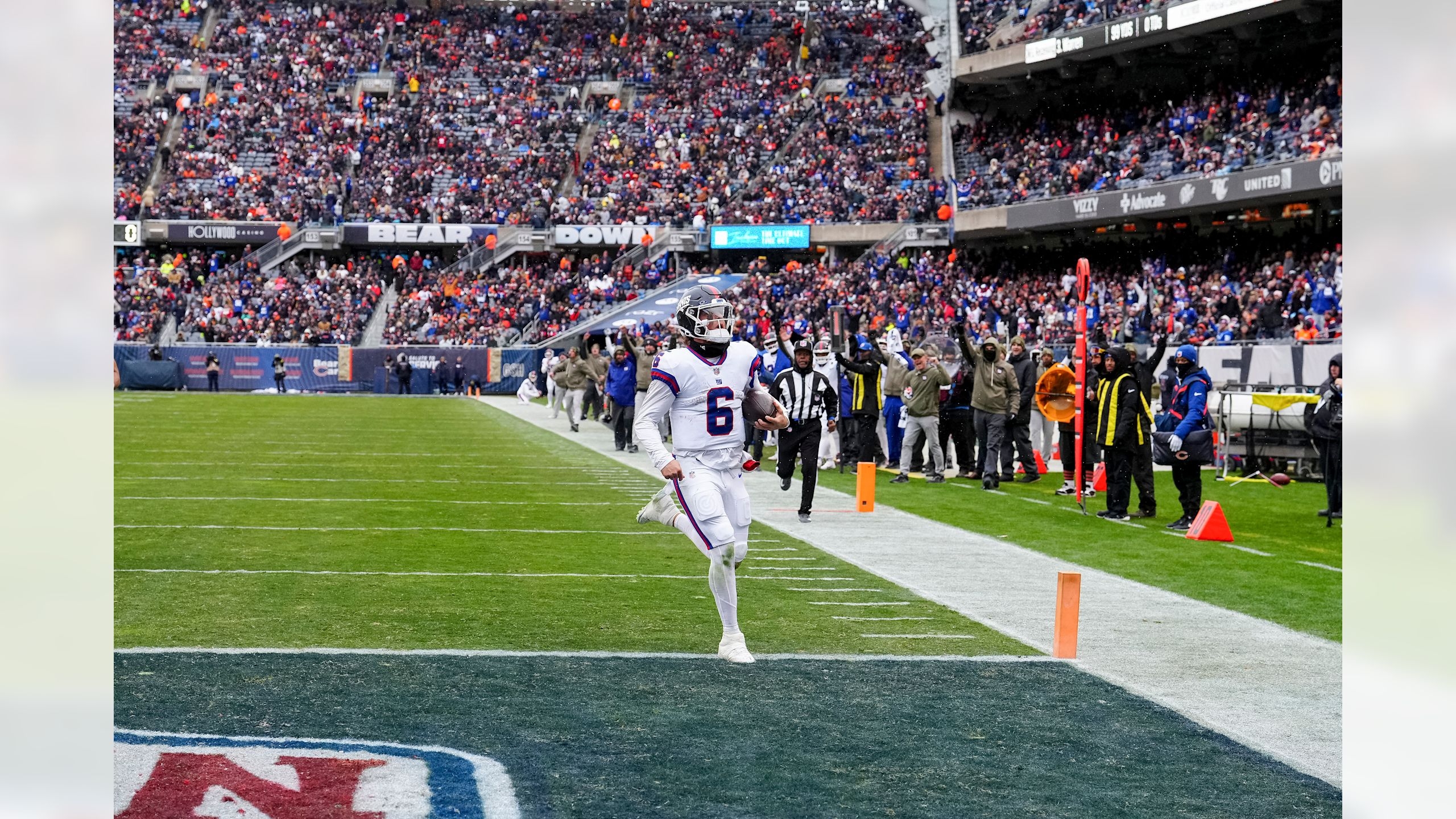 «Метлайф Стэдиум», чьими хозяевами в этот припорошенный снегом ноябрьский вечер являются «Нью-Йорк Джайентс» (2-7), принял в своих стенах «Медведей» из Чикаго (5-3). Первый снег навевал рождественское настроение и явственно напоминал, что рубеж середины сезона пройден. Впереди борьба за плей-офф. Или за пики повыше на грядущем драфте в надежде выловить неограненные алмазы новых талантов.