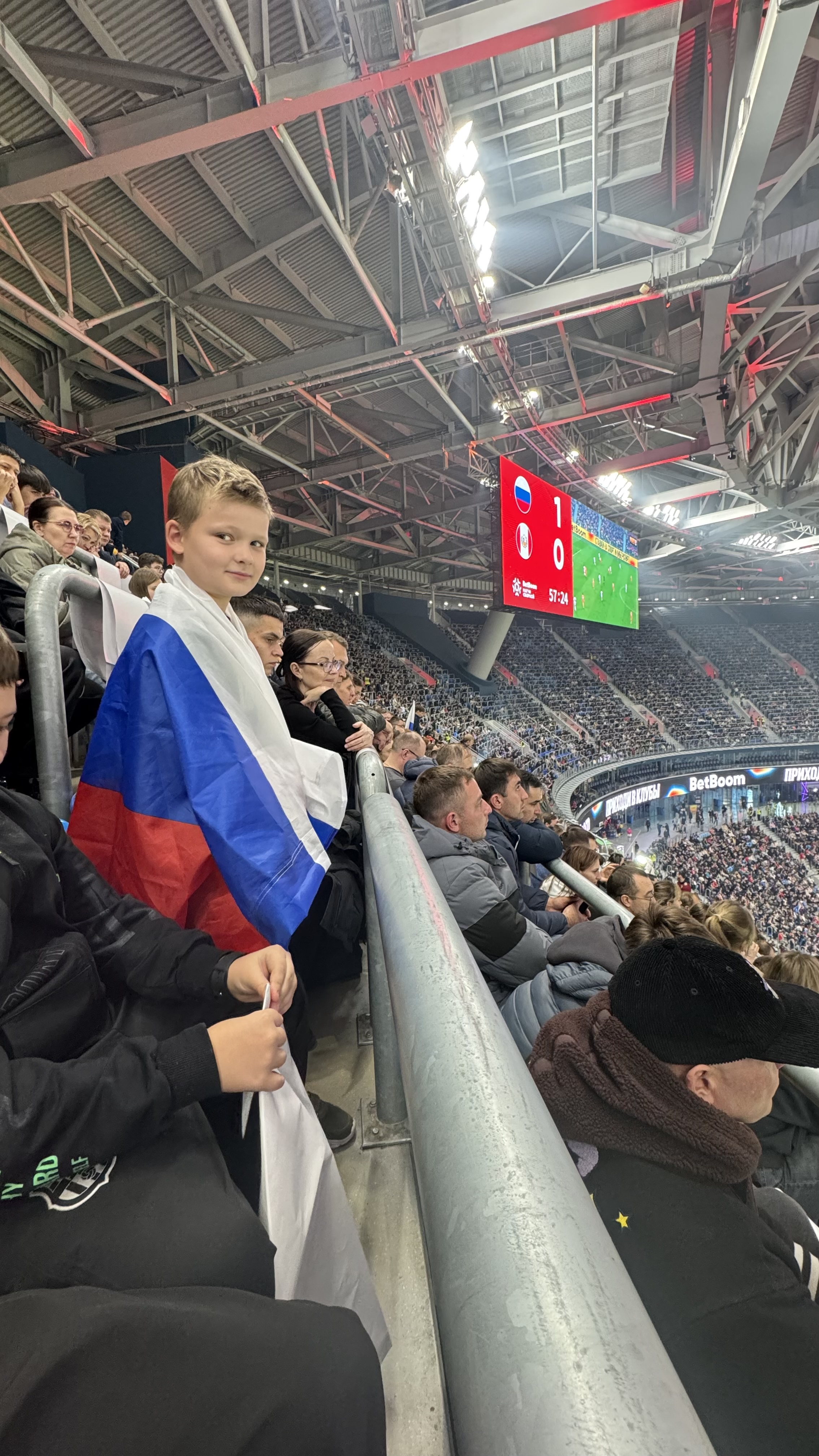 12 ноября мы с женой разделили футбольный вечер на «Газпром-Арене» с племянниками Бориславом, Глебом и Ярославом. Для Борислава это не первый поход на футбол на «Газпром-Арену», для Ярослава и Глеба такой опыт первый. Ребята ровесники, им по 11 лет.