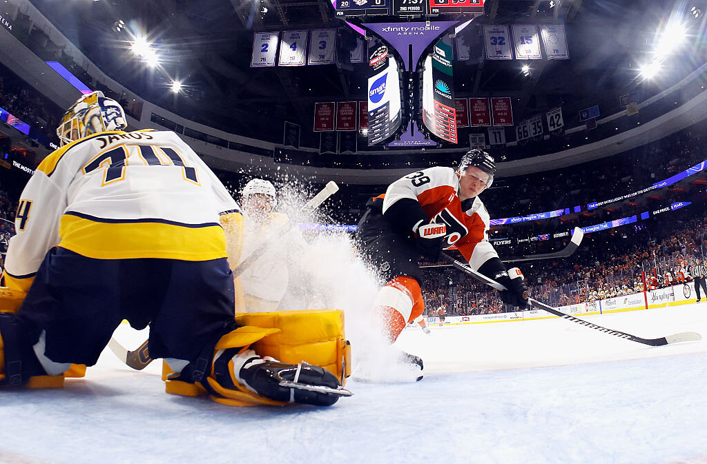 На первом фрагменте Матвей умчался забивать в чужую зону, когда шайба еще не покинула свою – численный перевес в чужой зоне «Оттава» быстро конвертировала в гол. На втором все понятно без лишних объяснений – такие передачи в концовке игры могут стоить очень дорого. Учтите, что это был первый бросок в створ у соперника за период – то есть «Филадельфия» переигрывала «Сенс», но Мичков дал сопернику шанс.