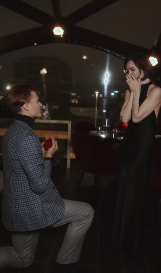 Пара объявила о помолвке красивым видео в соцсетях. На фоне ночной Москвы в ресторане на крыше танцор Ильдар Гайнутдинов задал важный вопрос. В ролике слышатся его слова: «Я могу пообещать, что я всегда буду рядом, я никогда тебя не предам, я буду делать все возможное для тебя».