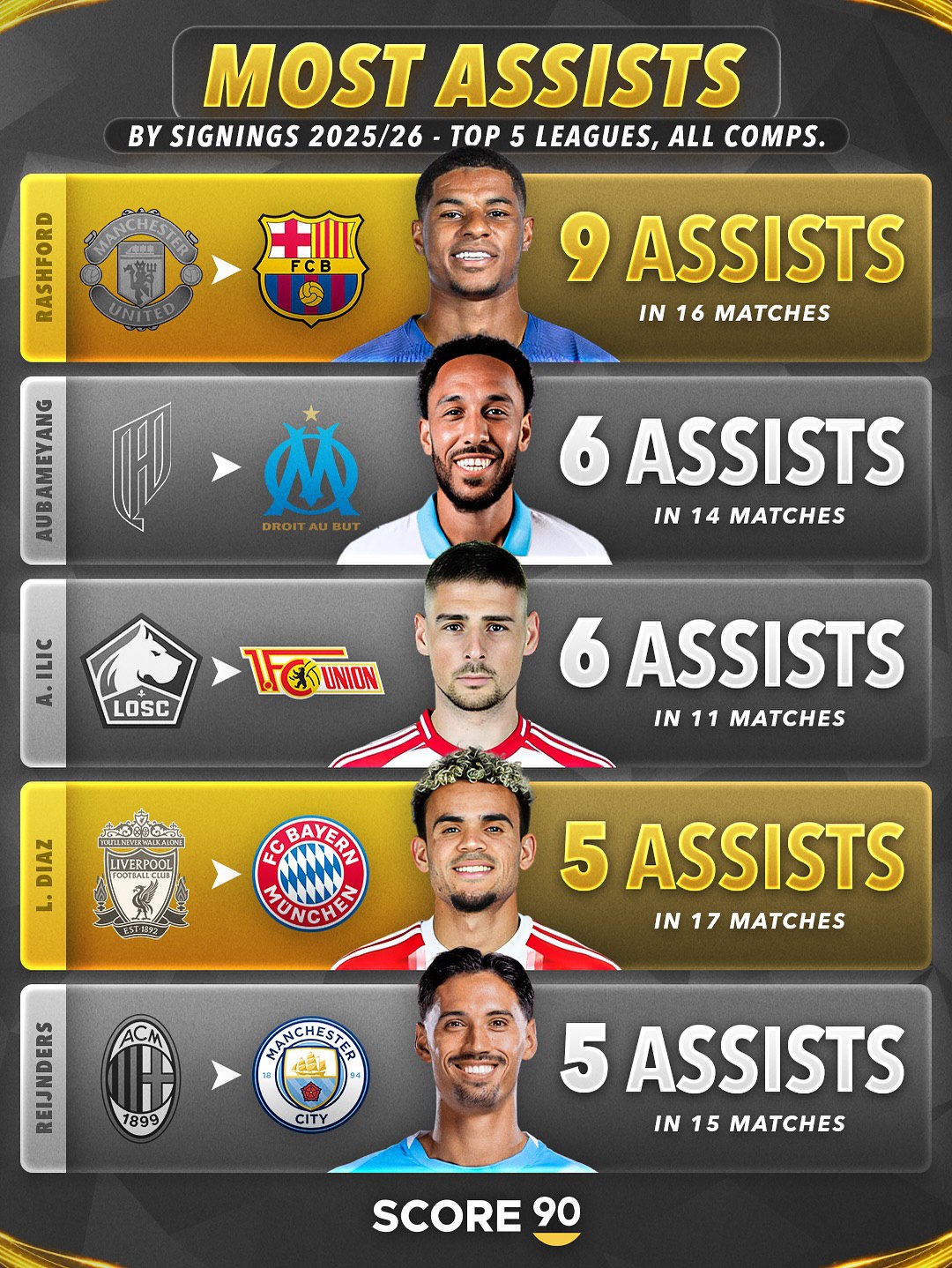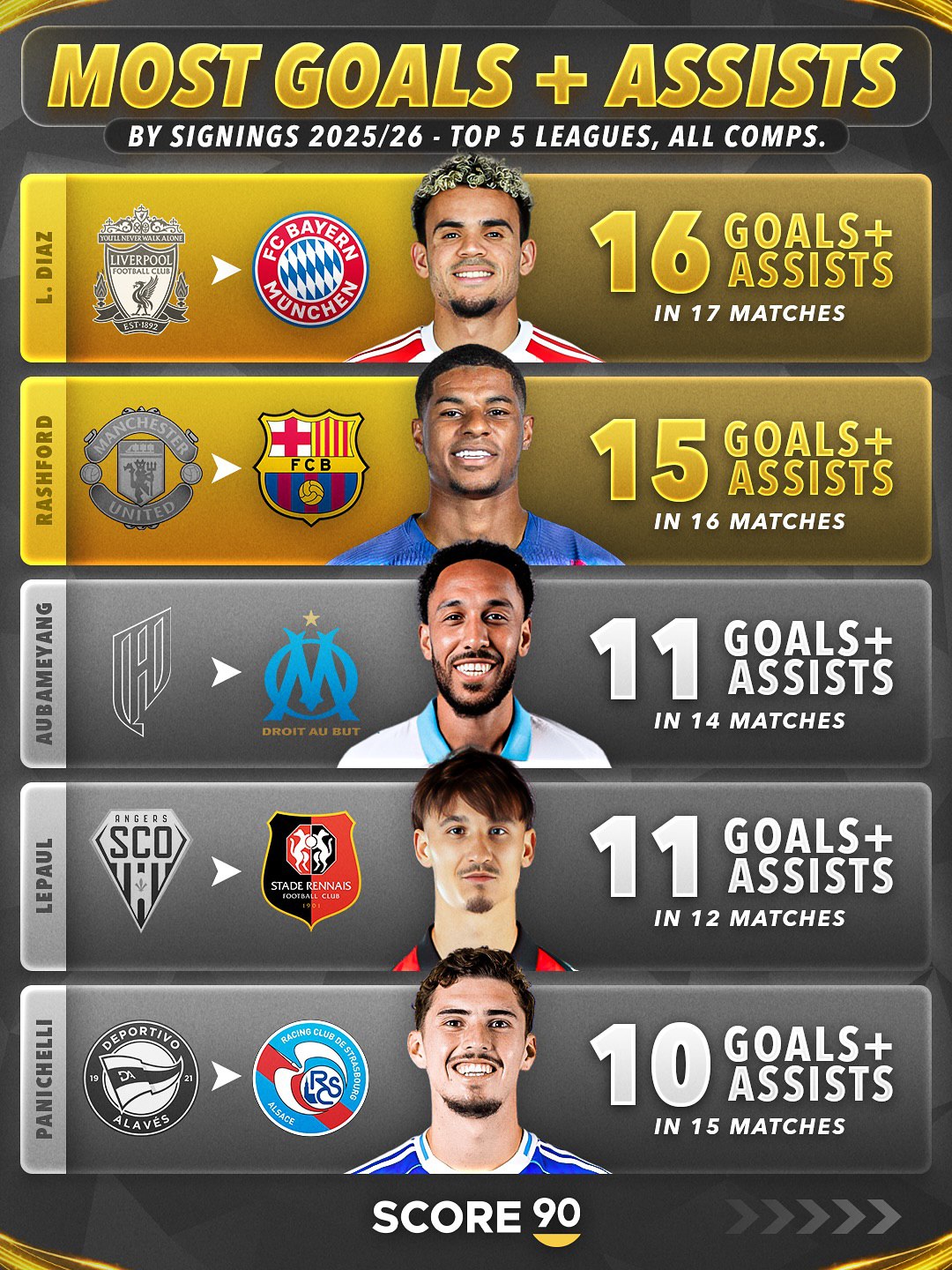 Портал Score90 изучил статистику игроков, сменивших клубную прописку этим летом. Критерии для составления топов простые: лучший бомбардир, лучший ассистент, лучший по «гол+пас». Выбирали из футболистов, которые начали сезон-2025/26 в топ-5 лиг Европы, а результативные действия считали по всем турнирам.