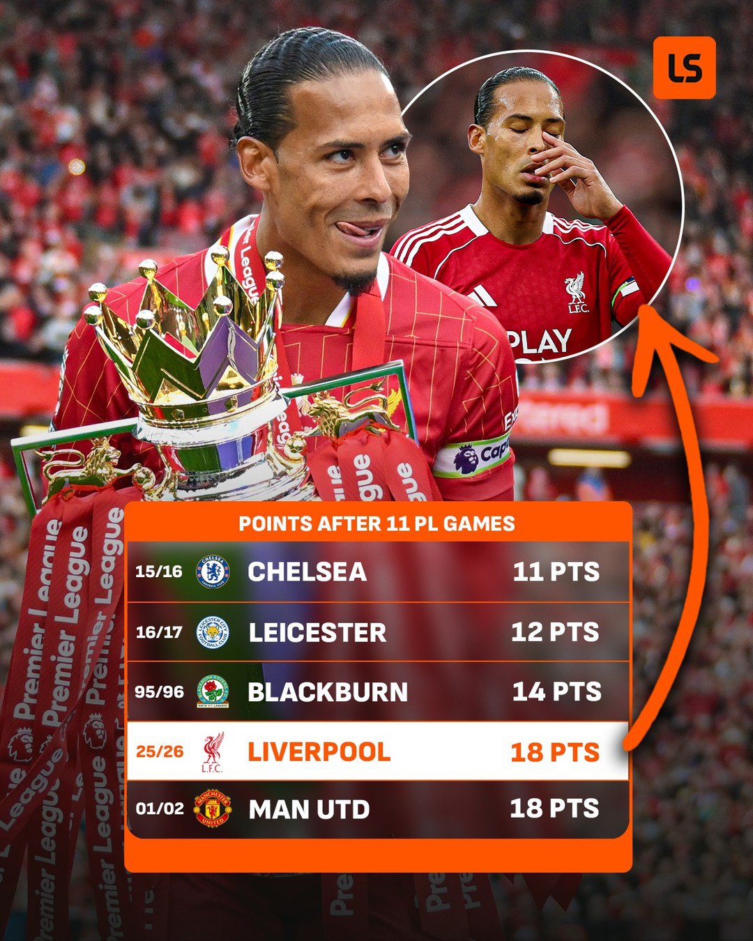 Как подсчитали эксперты LiveScore, мерсисайдцы выдали один из худших стартов действующего чемпиона в истории АПЛ.