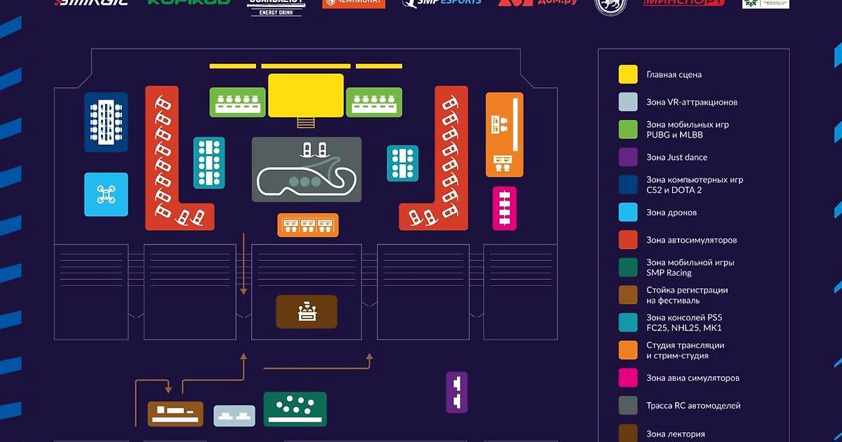 Гостей ждут турниры в 11 дисциплинах, включая Dota 2, Counter-Strike 2, PUBG Mobile, Mobile Legends: Bang Bang, Mortal Kombat, а также симрейсинг, интерактивный футбол и хоккей, RC-модели и гонки дронов. Призовой фонд — 700 000 рублей.