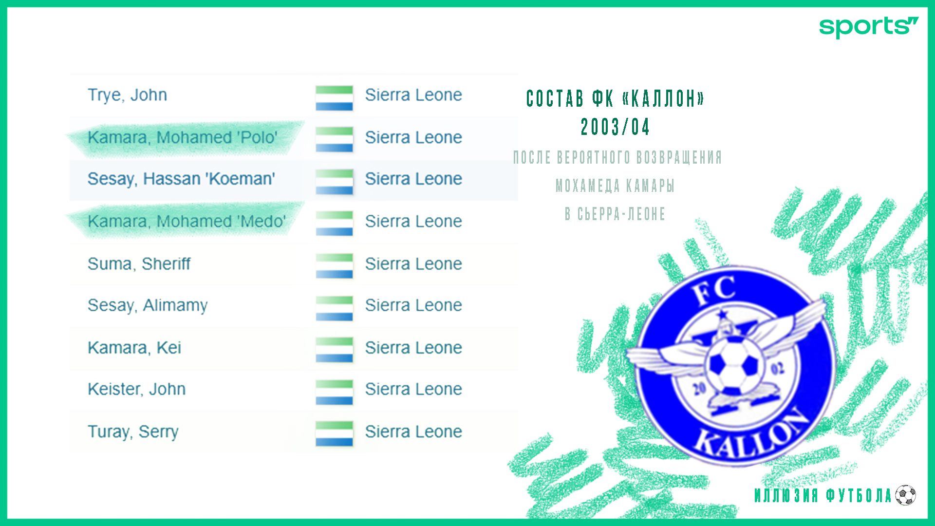 Оказалось даже, что его товарищем по команде после возвращения из России на родину был Мохамед «Медо» Камара – оба они играли за ФК «Каллон» и являются его воспитанниками, а чтобы болельщики могли их различать наш герой, вероятно, взял себе дополнительное имя «Поло» – вот она, разгадка прозвища Медо.