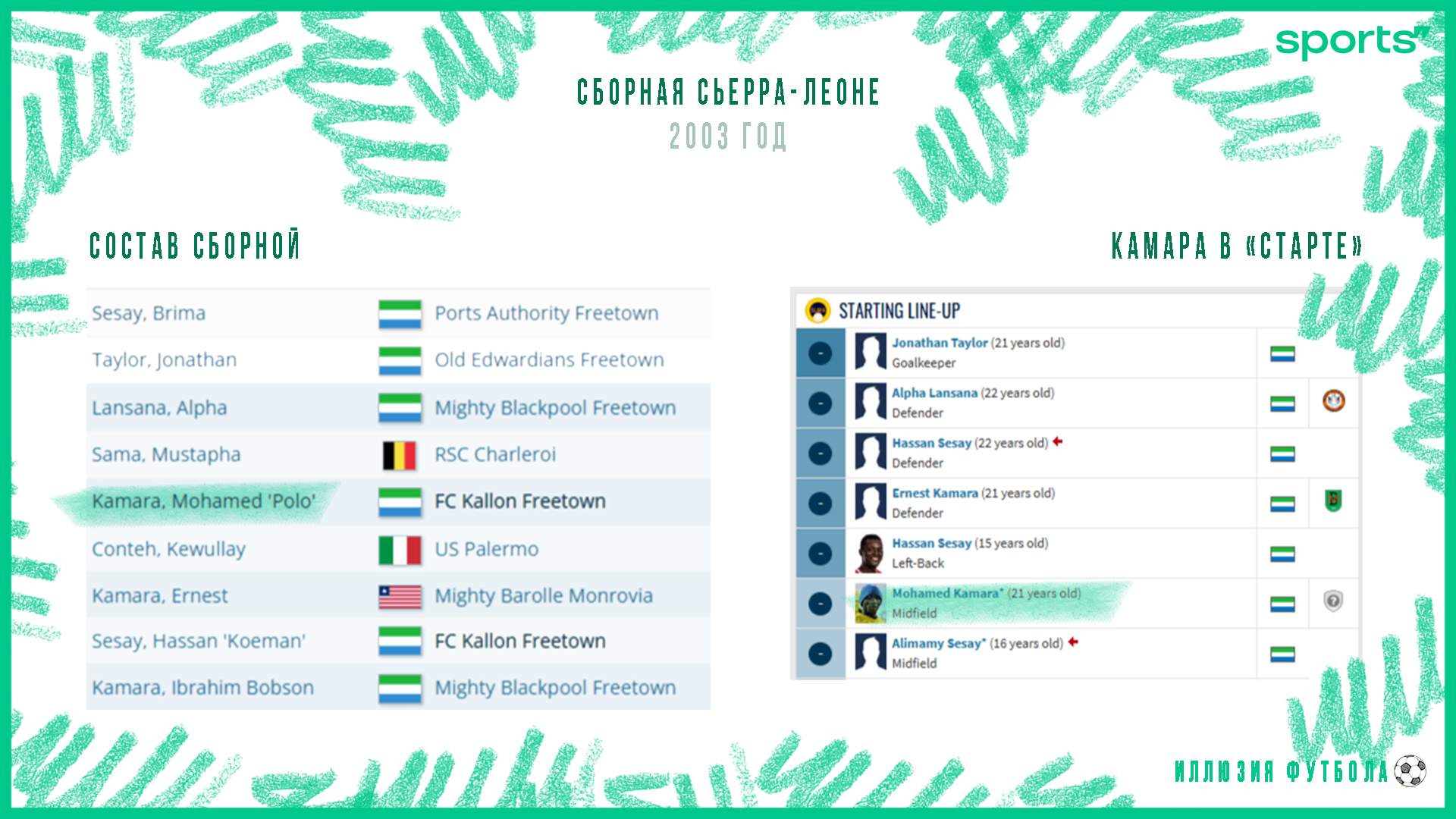 Искра, буря: это же он! Единственный Мохамед Камара в составе сборной Сьерра-Леоне, выступавший за национальную команду с 2000 по 2004 год – именно об этом и говорилось в газетной заметке!