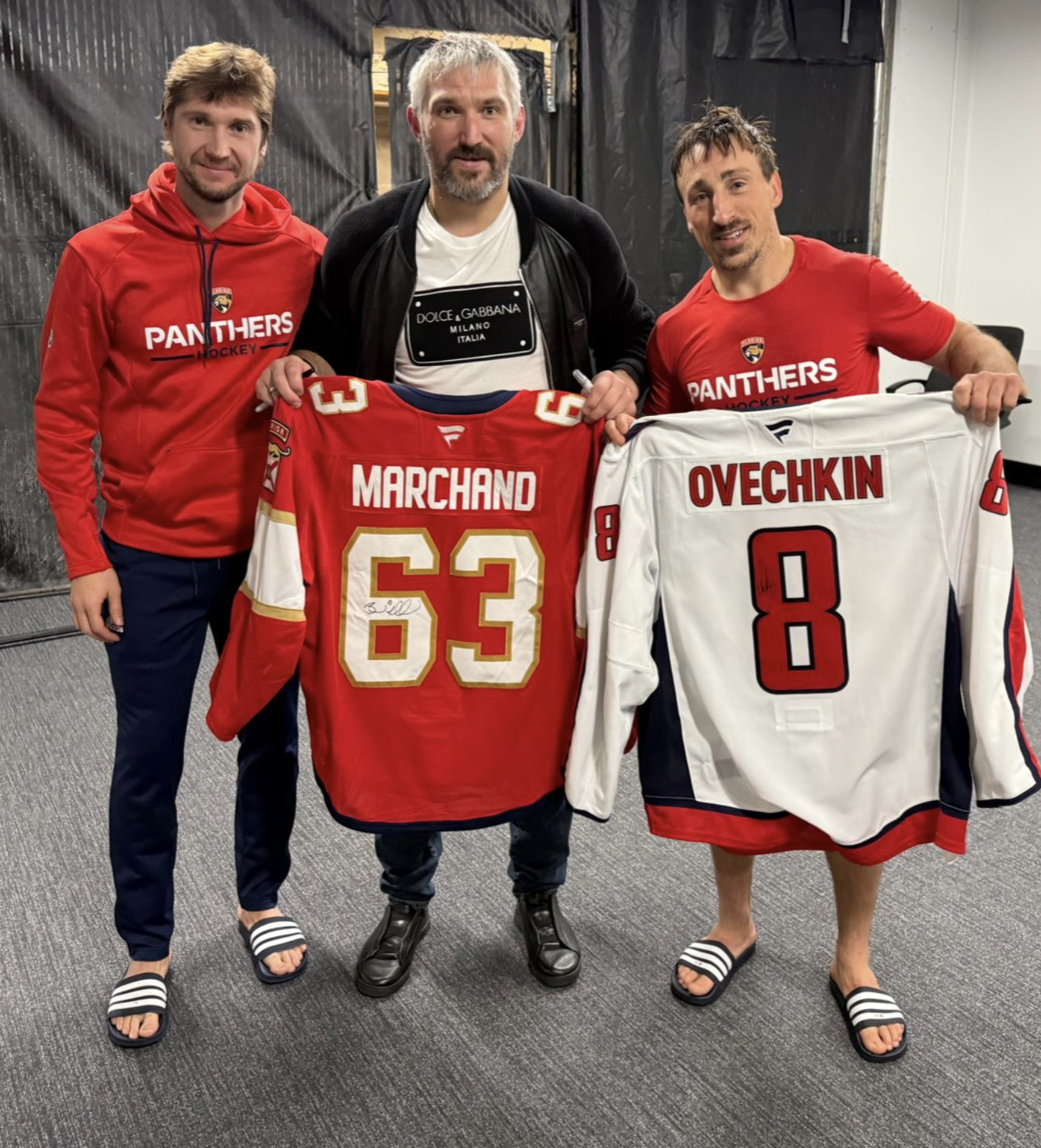 Брэд еще и обменялся игровыми свитерами с другим недавним юбиляром – Александром Овечкиным. Похоже, встрече ветеранов поспособствовал Сергей Бобровский. На памятном фото он стоит рядом с Маршандом и Ови.