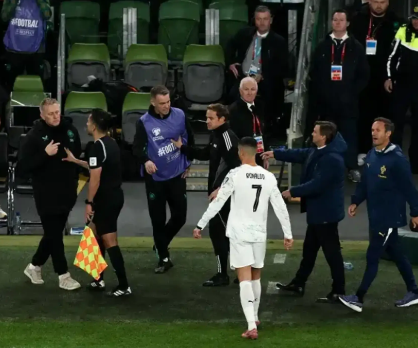Кроме того, что Роналду демонстрировал ироничные жесты со слезами, он еще и поругался с тренером Ирландии.