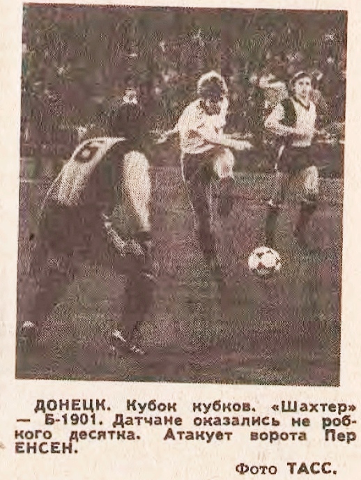 В сезоне 1983/1984 донецкий «Шахтер» впервые вышел в еврокубковую весну. Команда прошла два раунда Кубка Обладателей Кубков, последовательно выбив Б-1901 и «Серветт». Но если швейцарский клуб был обыгран дважды с разницей в один мяч (1:0 дома и 2:1 в гостях), то датчан «горняки» просто не заметили.