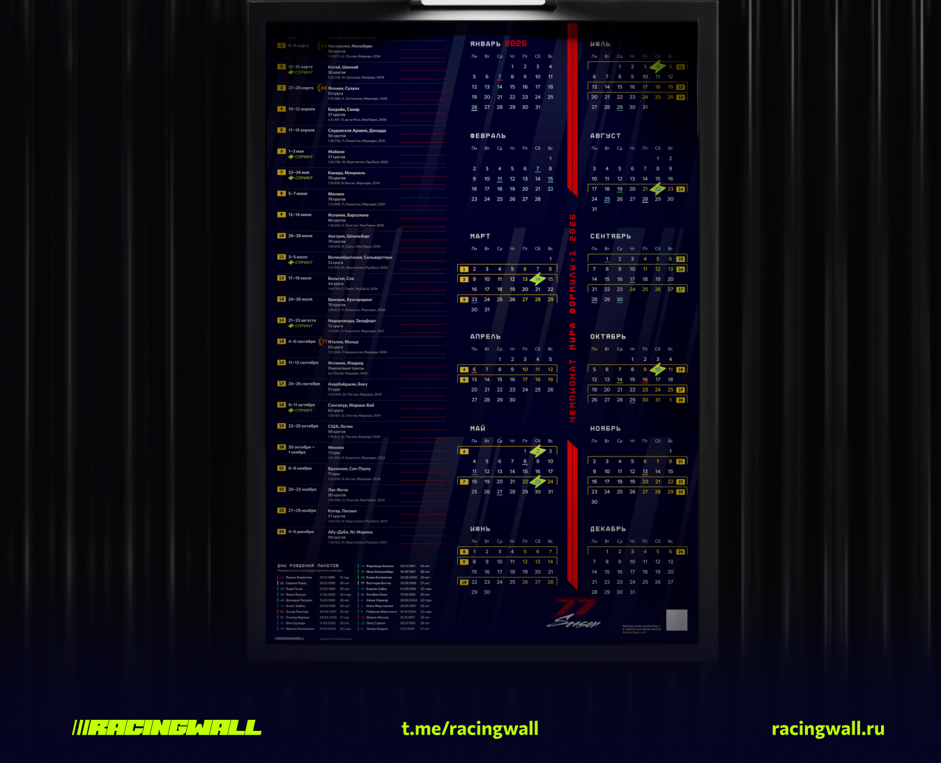 Настенный календарь Формулы-1. Финальный дизайн календаря
