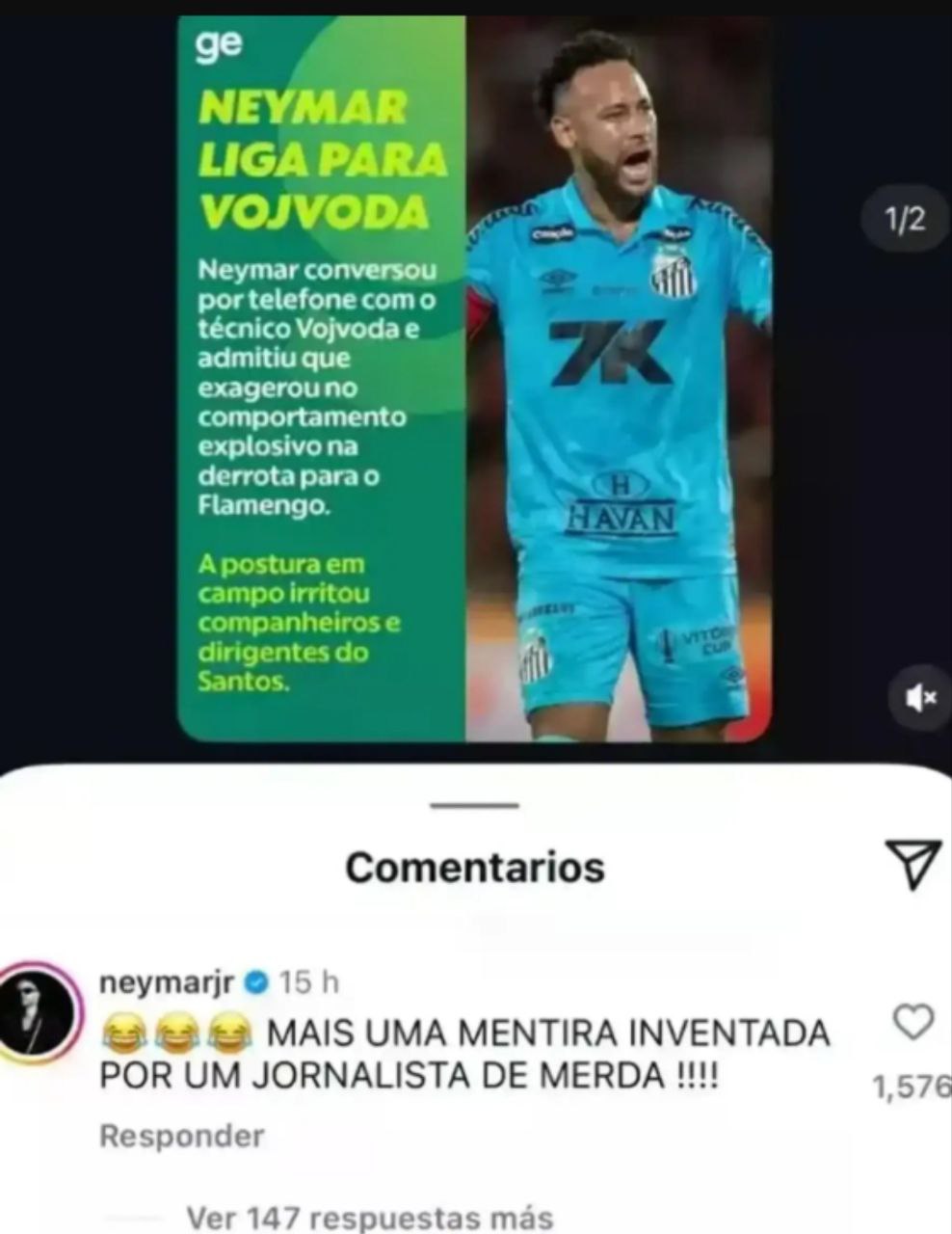 Неймар вспылил и в медиа. Прокомментировал пост с инсайдом в инстаграме Globo: «Еще одна ложь, выдуманная дерьмовым журналистом!»