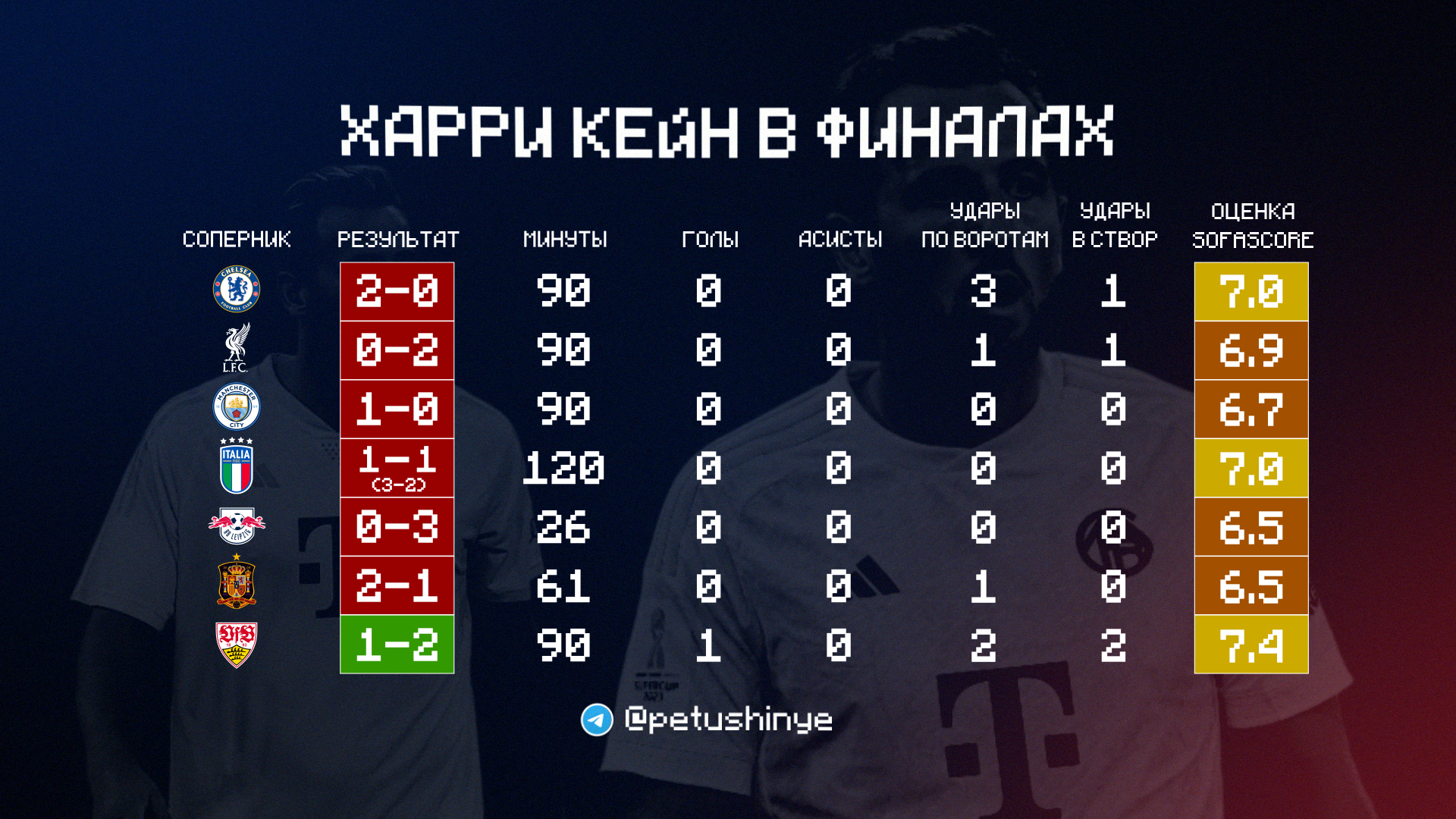 Финал ЛЧ лишь подтвердил это ощущение. В решающих матчах Харри будто выключают — он растворяется на поле, превращается в тень самого себя из игр с середняками.