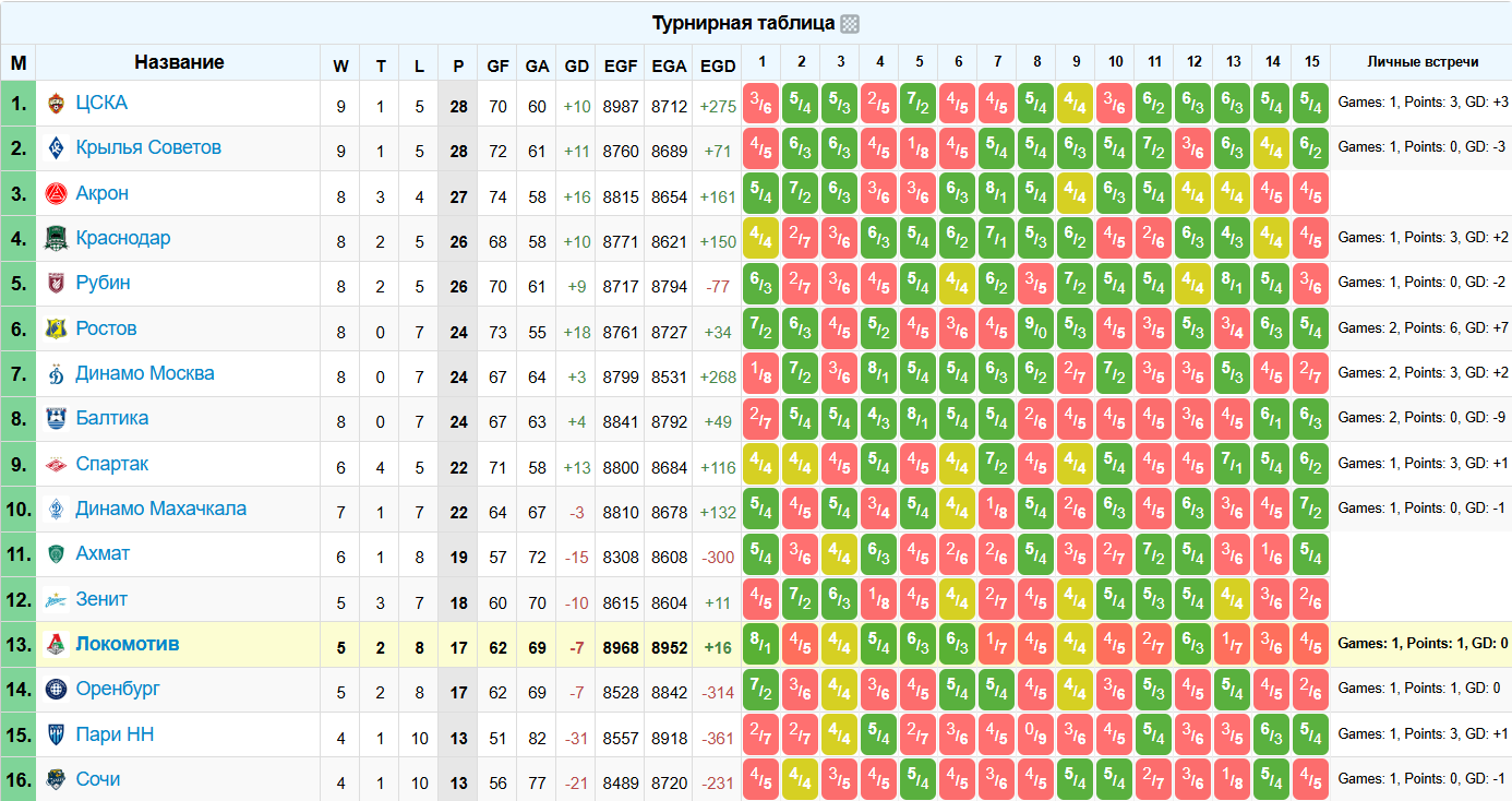 Уже завершился первый круг чемпионата России по футболу, а у нас завершился групповой этап турнира.