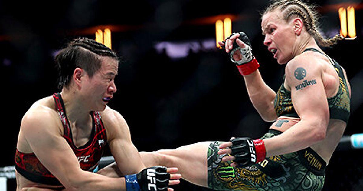 В итоге никакого близкого поединка не случилось. Шевченко забрала преимущество с третьей минуты первого раунда. Была даже конкретная точка: Чжан агрессивно ворвалась на ближнюю дистанцию, а Шевченко ответила тяжелейшим ударом коленом по корпусу. Сразу после него претендентка сама свалилась в партер, достаточно быстро вернулась в стойку, но после этого момента уже была не такой активной на сближениях.