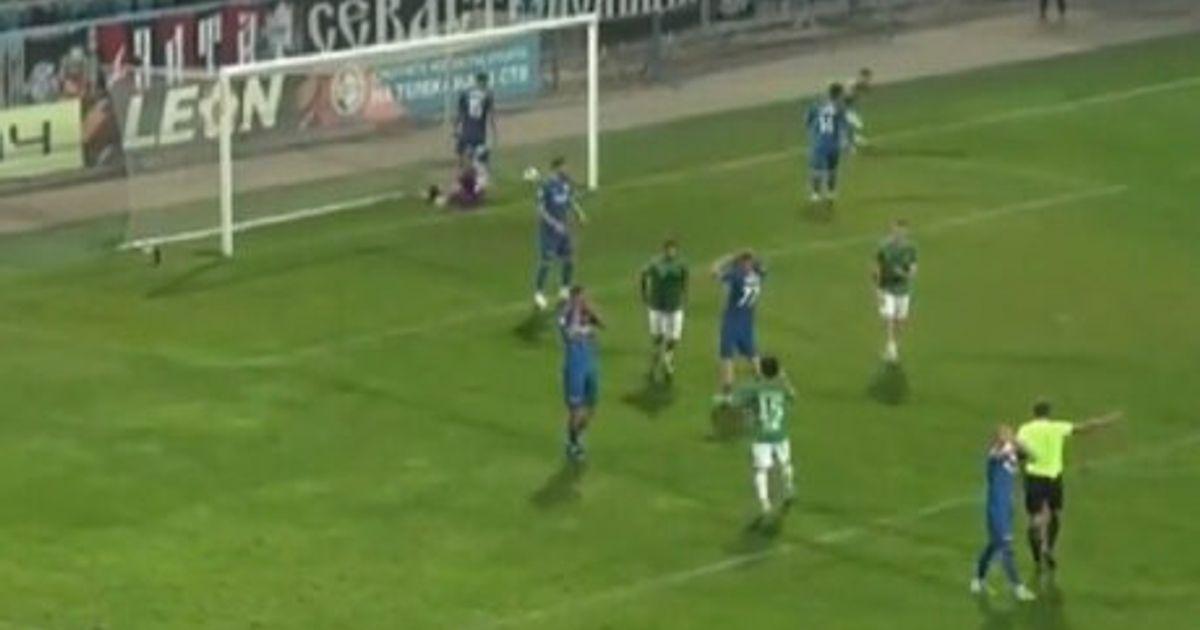 Когда игрок понял, что натворил, натянул футболку на голову и побрел к центру. А некоторые одноклубники разочарованно рухнули на газон. Ну как так?