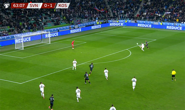 Карничник пытался перехватить пас, но в итоге зарядил в свои ворота с лета. Бедный Ян Облак!