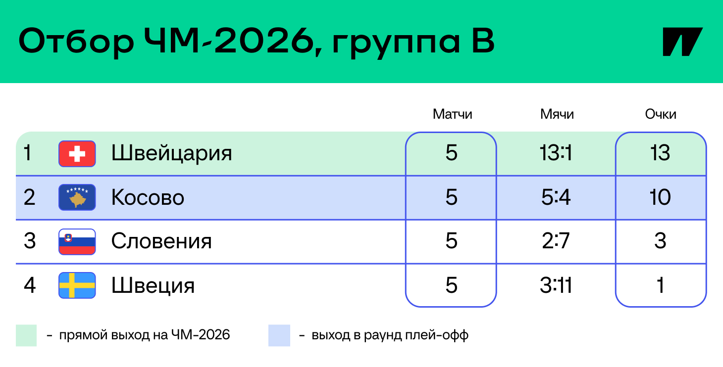 Теперь Косово – точно в стыках. Прямой выход возможен в теории: надо побеждать швейцарцев с разницей в шесть мячей. Короче, только в теории.