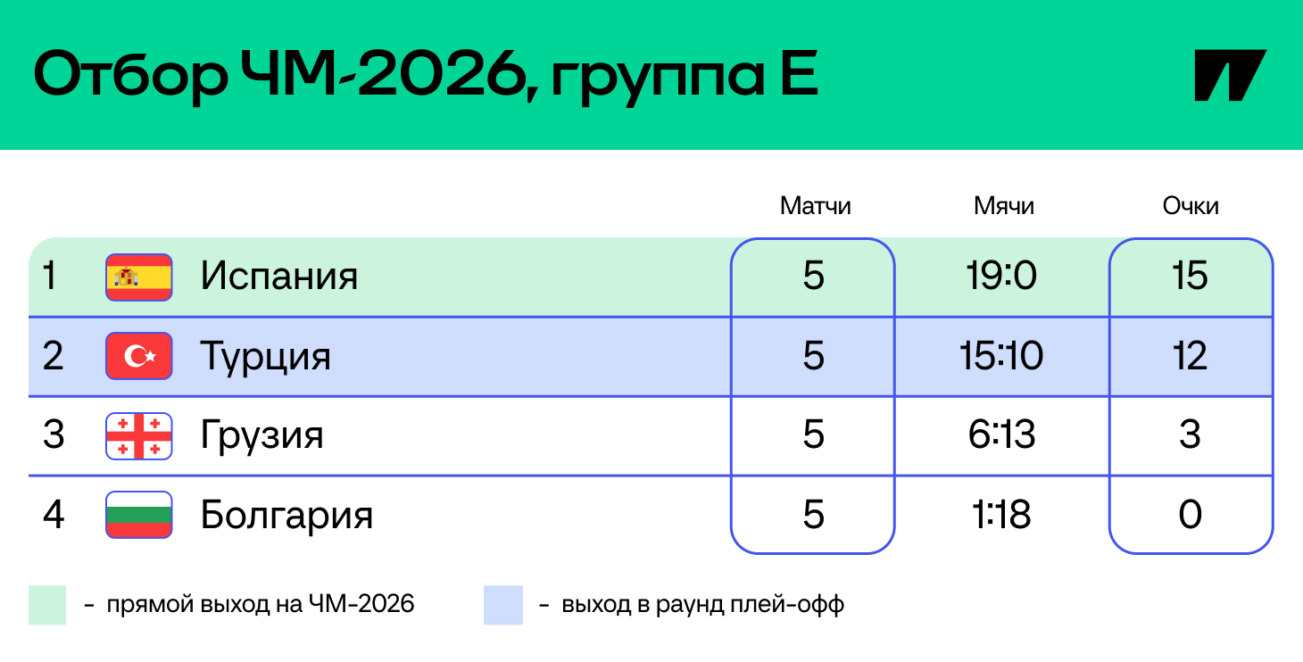 Группа E: Испания покуражилась в Грузии, Турция победила Болгарию