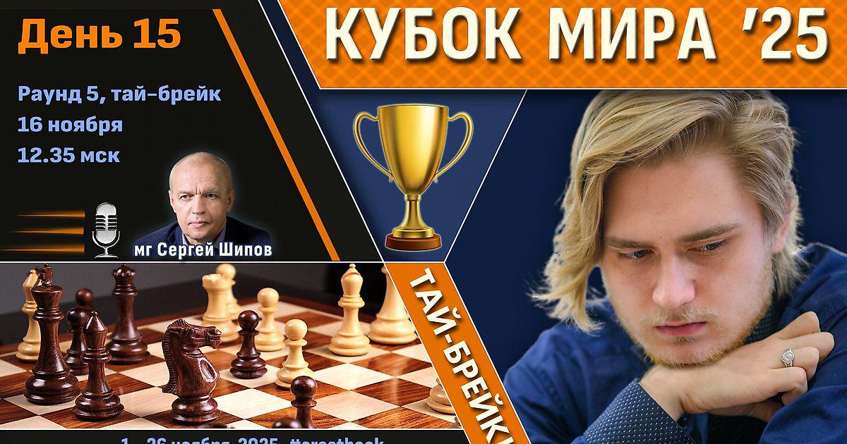 Кубок Мира 2025 🏆 День 15 [1/8, тай-брейк] ⏰ 16 ноября, 12.35 🎤 Шипов, Филимонов ♛ Шахматы