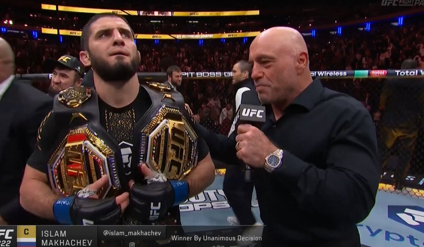 Махачев радовался победе, но в словах был сдержанным – почти никого не поблагодарил и не сказал ничего религиозного: «Это мечта. Вся моя жизнь – эти два пояса. Они тяжелые, и мне это нравится. Я тяжело работал ради этого момента. Нью-Йорк, спасибо!»