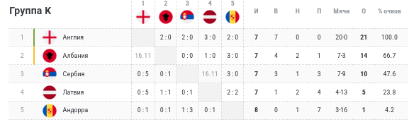 Интриги нет. Англия едет на ЧМ-2026, Албания поборется за это право в турнире стыковых матчей.