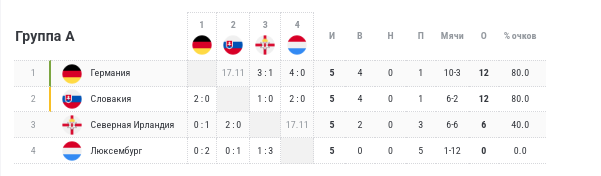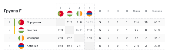 - при минимальной победе дома над Ирландией и крупном поражении Португалии от Армении.