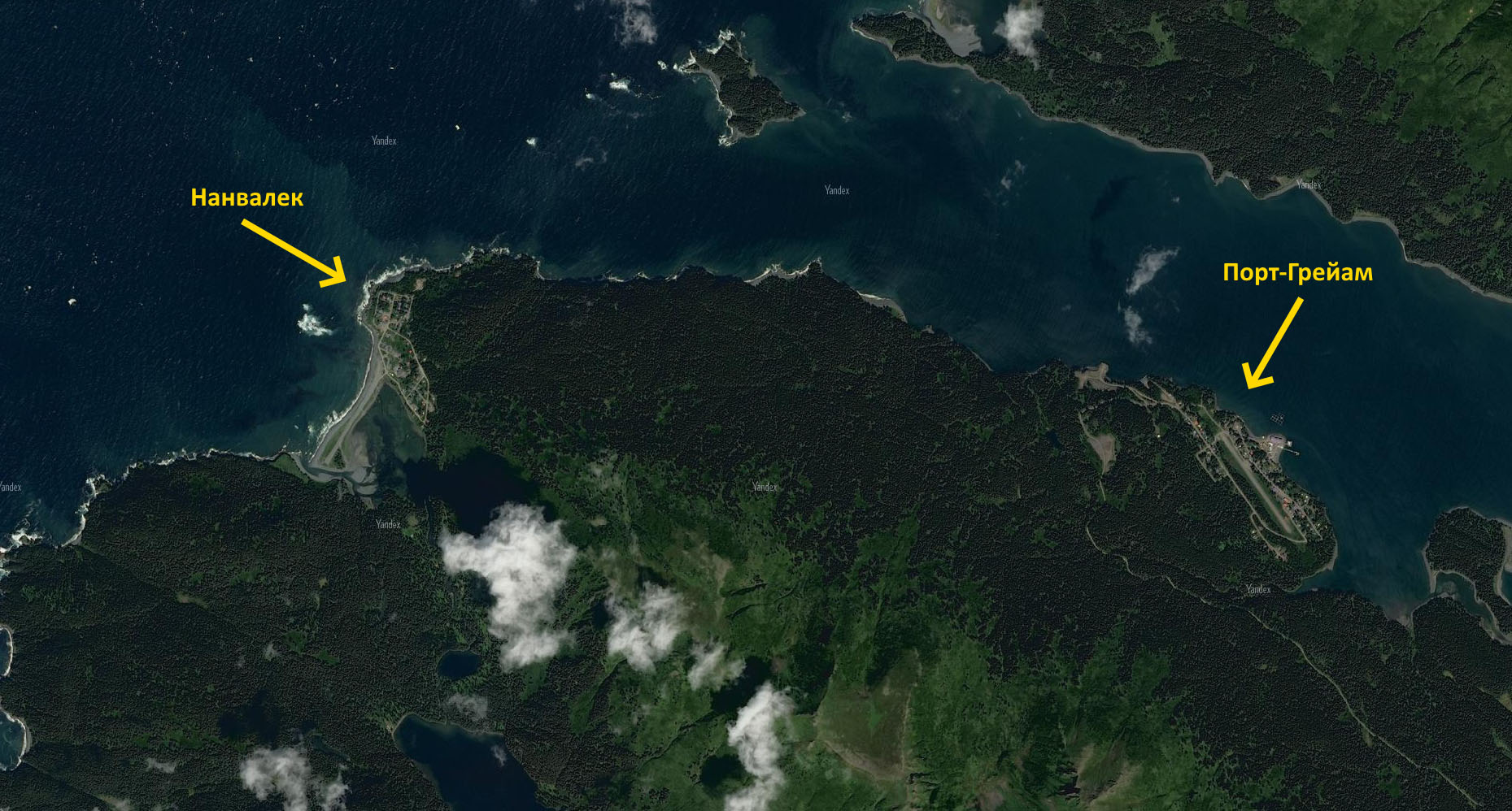 Это суровая и отдалённая местность с низкой плотностью населения. Чтобы попасть в Анкоридж, нужно пройти по воде 250 км. Сейчас в Порт-Грейаме и Нанвалеке суммарно живёт чуть больше 400 человек — и, скорее всего, это максимум за последние 200 лет. Местные жители имеют смешанное русское и алеутское происхождение.