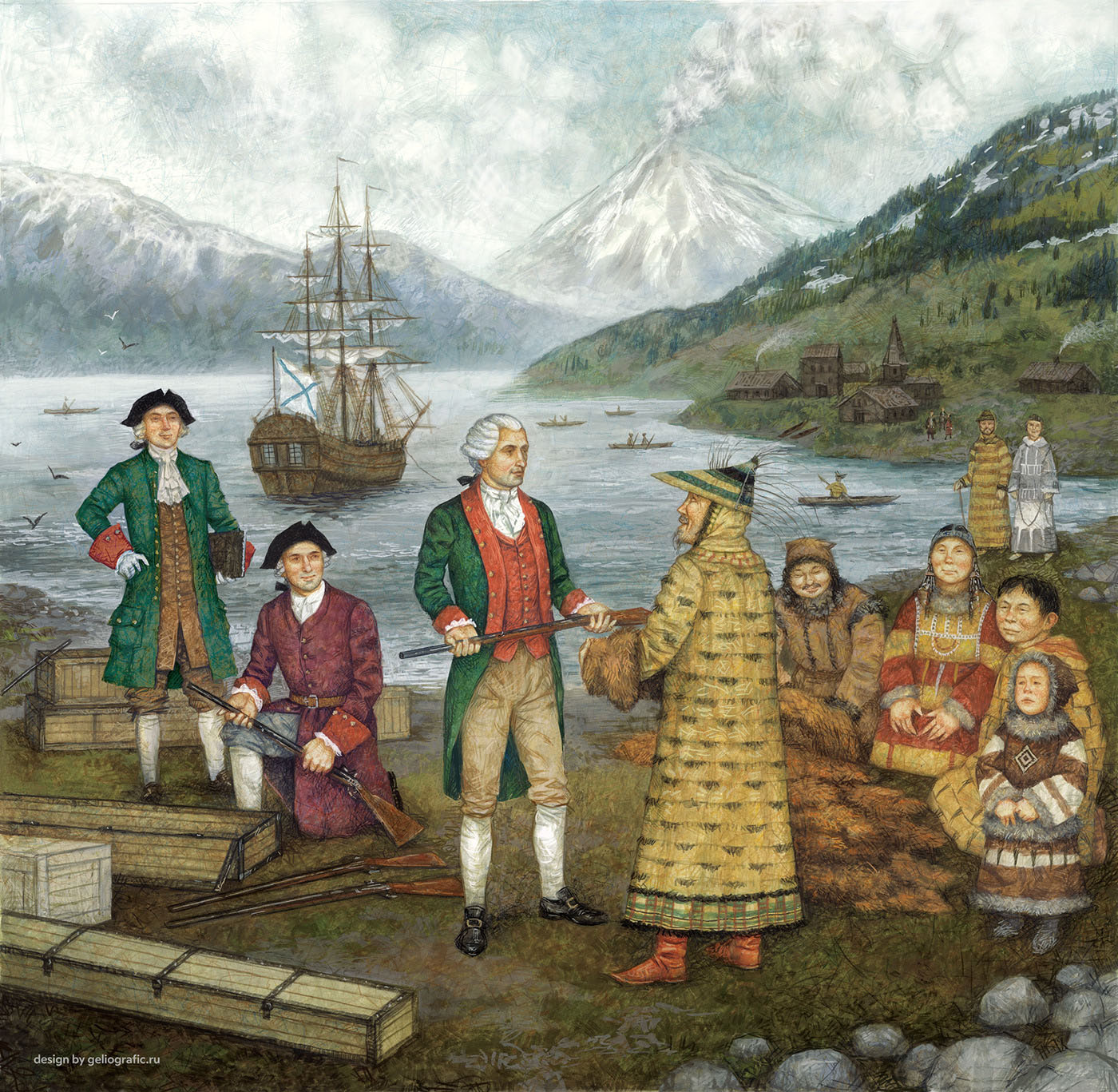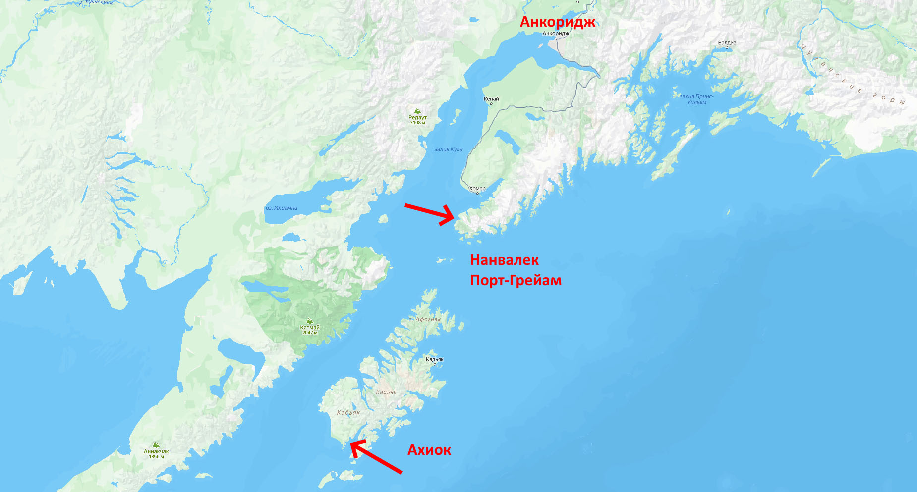 Здесь действительно в XIX веке были посты Российско-Американской компании, служащие которой занимались охотой и торговлей. Поселение Нанвалек раньше называлось Александровск. И, как вы могли заметить, термин «miatzic» явно созвучен русскому слову «мячик». Кстати, алеуты — русский термин; самоназвание этого народа «сугпиат».