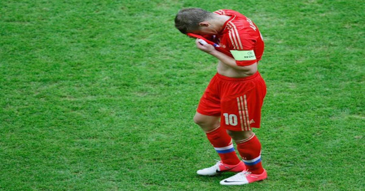 Матч начался. Некоторые персонажи продолжали ходить по полю, словно соревнуясь в том, кто сделает это медленнее. Другие бравировали ударами по воротам, имя которым тьма, а результату которых ноль. Кое-кто продолжал улучшать антирекорд. И тут случился гол. Аккурат под перерыв. А во втором тайме оказалось, что фаворит не знает что с этим делать и, что самое страшное, не может. Постепенное осознание беспомощности поначалу было подслащено благоприятным развитие событий в параллельном матче, но когда и там изменился счет, даже у самых стойких сдали нервы. Происходило немыслимое - потеря Евро, невыход из простейшей группы на турнире. Корвалол и водка лились рекой, которая пополнялась слезами разочарования и невыносимой гибели веры тем больше, чем ближе был финальный свисток. И он прозвучал. И тренер сказал "спасибо" и уехал в ПСВ. Игроки быстренько разошлись и никто не извинился. Болельщики на трибунах? Могли бы сидеть дома!