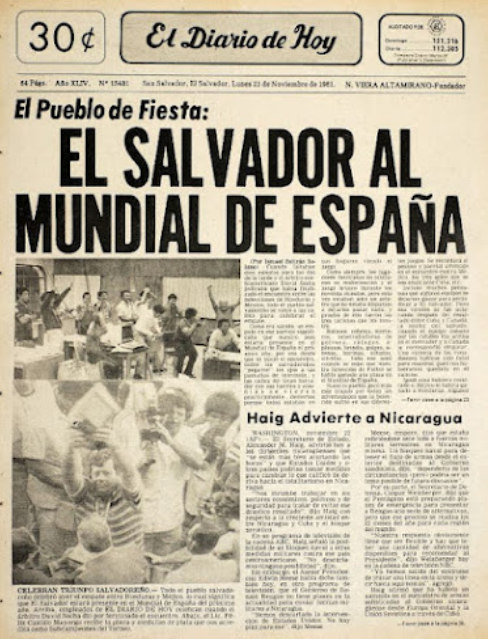 Одна изведущих сальвадорских газет El Diario de Hoy от 23 ноября 1981 с главной новостью дня на первой странице: «САЛЬВАДОР - НА ЧЕМПИОНАТЕ МИРА В ИСПАНИИ»