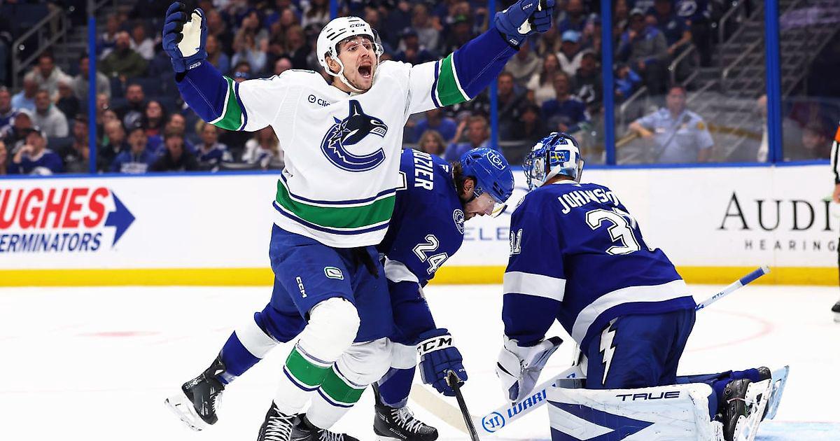 «Тампа-Бэй Лайтинг»-»Ванкувер Кэнакс» 2:6. Гости в 3 периоде забросили 5 шайб. Куин Хьюз отдал 4 результативные передачи, Маккензи МакИчерн набрал 2 очка (1+1), Элиас Петтерссон и Филип Хронек отдали по 2 результативные передачи, Кевин Ланкинен отразил 29 бросков. У хозяев Никита Кучеров забросил одну шайбу. В первом периоде Даррен Рэддиш подрался с Конором Гарландом.