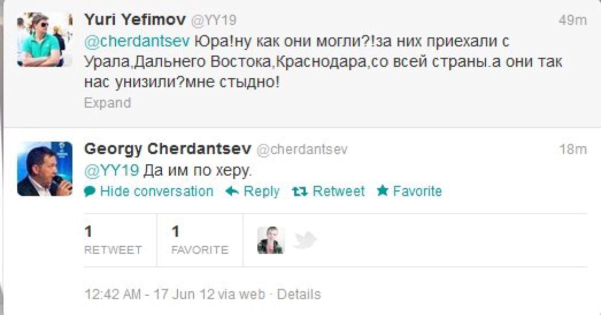 Вот это и самое обидное- что Им по херу, всем им, от руководства с фурсой во главе, до самого последнего игрочишки. Они никому ничего не должны (Зырянов), они ирают не для нас (Широков), так какого черта мы смотрим их по телевизору, ходим на стадионы, если им на нас по херу. Предлагаю устроить всероссийскую акцию протеста, перестать ходить на стадионы (на сборную), игнорировать тв трансляци, чтоб все рейтинги упали, и убрать это гнилое газпромовское руководство, для которых на первом месте стоит их кошелек с бабками, а на людей им наплевать.