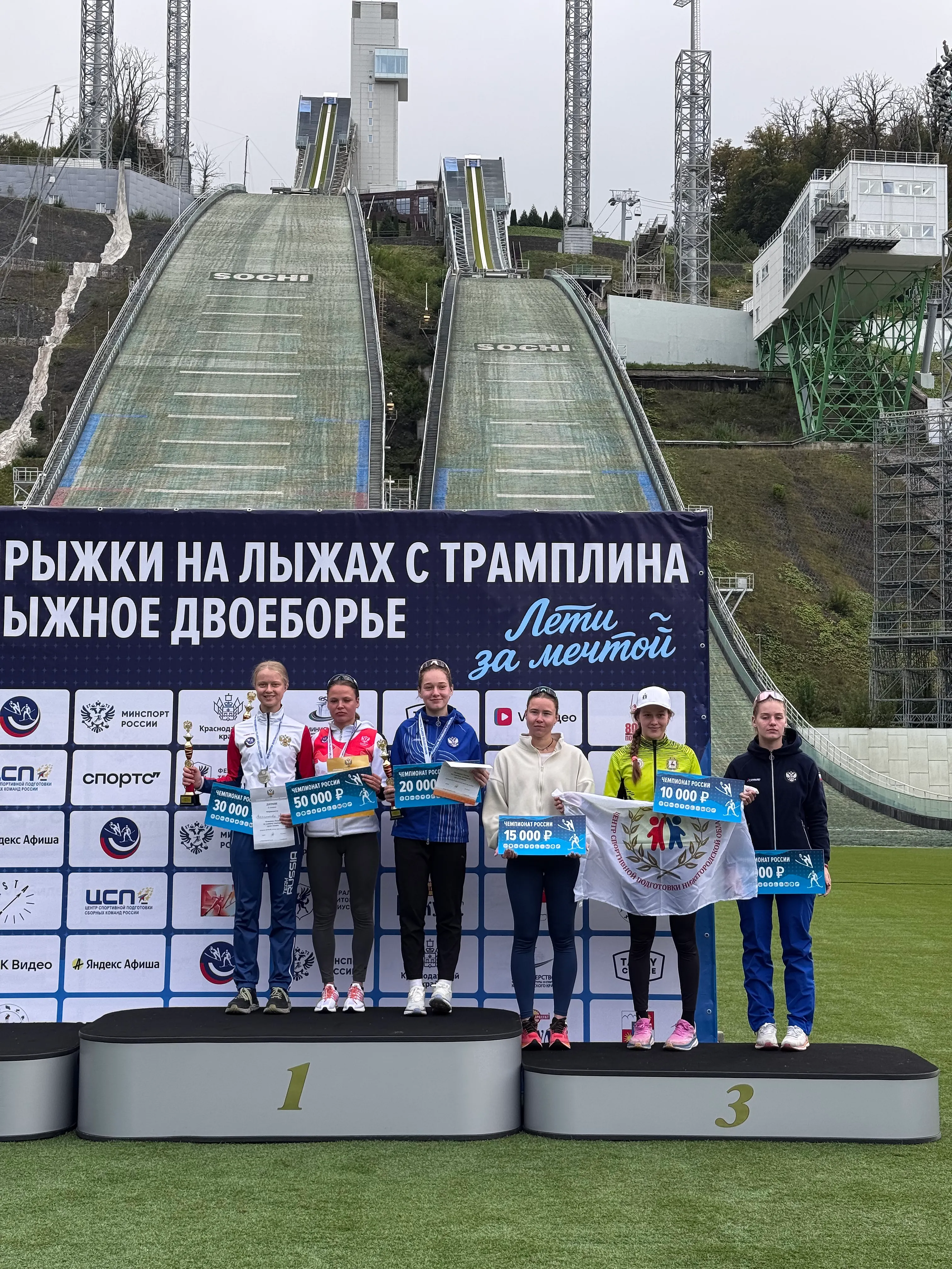 В женском турнире — новая глава. Золото уверенно забрала Александра Кустова из Магаданской области, продемонстрировав два отличных прыжка — 117 и 123 метра. Женские прыжки на большом трамплине всё больше набирают зрелищность, а их география расширяется — Магадан, Санкт-Петербург, Москва. Валерия Римденок вновь вошла в тройку сильнейших, а Ксения Каблукова укрепила свой статус самой стабильной: два старта, две медали.