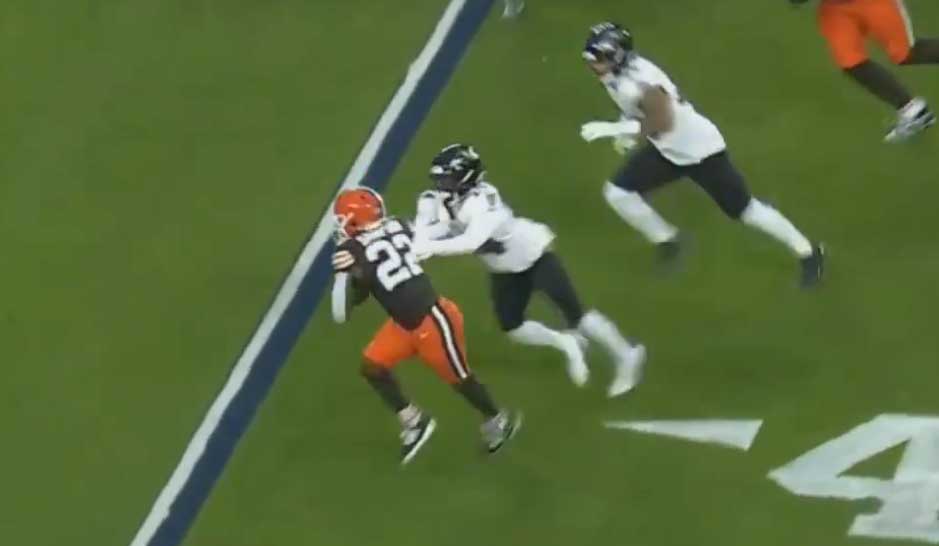 Драйв Браунс. Высокий пант, фэйр-кэтч на 17 ярдах.