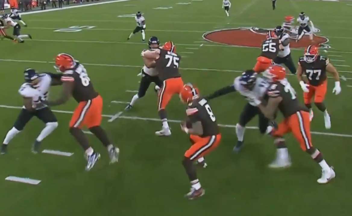 Драйв Браунс. Корли возвращает до 33, тэклит как раз Мартин, который LB из резерва.