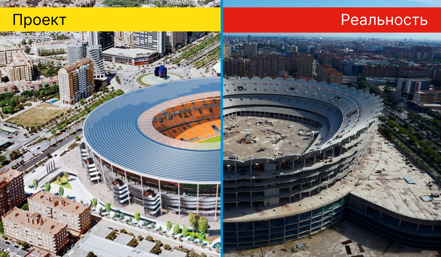 Наглядным олицетворением всех бед клуба, разрывом между амбициями и реальностью — стало строительство нового стадиона «Валенсии». Задуманная как футуристический храм, «Новая Месталья» уже больше десяти лет, как призрак, стоит на окраине города. Этот долгострой, эти оголенные арматуры и заброшенные краны стали метафорой самой «Валенсии» — клуба с колоссальным потенциалом, который годами не может достроить свою мечту. Болельщики с болью в сердце смотрят то на ветшающую святыню, то на её недостроенную замену, чувствуя себя заложниками этой неопределенности.