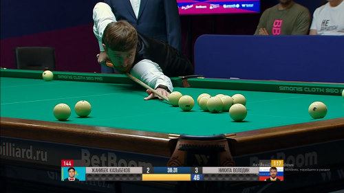 Я наткнулся на матч случайно. Не планировал смотреть его(в моем доме телевизор в принципе включается пару раз по вечерам, если брать в расчет среднестатистическую неделю), но я решил дать шанс бильярду. Я до этого уже пару раз видел бильярд Никиты Володина, знаю Иосифа Абрамова и Максима Зверева. Бильярд меня расслабляет, я получаю эстетическое удовольствие от просмотра игры. У меня даже была попытка согласовать интервью и тренировку с Никитой Володиным(мы оба петербуржцы), но не срослось по причинам, известным стороне Никиты. В подобном стиле я делал материал с тренировки с боулером Полиной Шутовой(за которой буду следить в декабре в Гранд-финале Континентальной Лиги Боулинга, под фамилией Кудрина выступит Полина, вышла замуж). Интересно, как мир спорта широк. Но сейчас о бильярде, главный герой заметки Жанибек. Заметка о бильярде в моем многогранном спортивном и социальном блоге впервые.