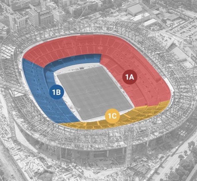 Вот все наглядно. 1A и 1B – уже полученные лицензии, красная и синяя зоны стадиона уже доступны для болельщиков, а 1С – следующий шаг.