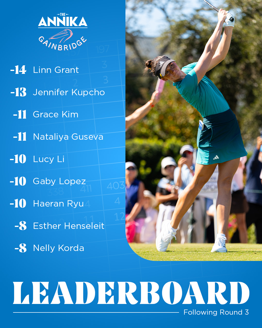 Третий раунд стал лучшим днём Наталии за весь сезон, а возможно, и за всю её американскую карьеру. –7, лучший счёт дня, лучший счёт недели, чистый раунд без единого богги — идеальная симфония контроля и точности. С этим результатом Гусева поднялась на Т3 и впервые за неделю оказалась внутри топ-60 Race to CME Globe. Это был первый поворотный момент, когда история перестала быть о выживании и превратилась в борьбу.
