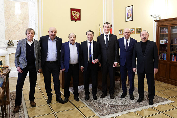 О самой встрече сообщил аппарат Дегтярева, там были Михаил Гершкович, Валерий Газзаев, Юрий Семин и Станислав Черчесов как главные лица. А также директор академии «Зенита» Анатолий Давыдов и скаут «Спартака» Сергей Ломакин – им вручили корочки «Заслуженного тренера России».
