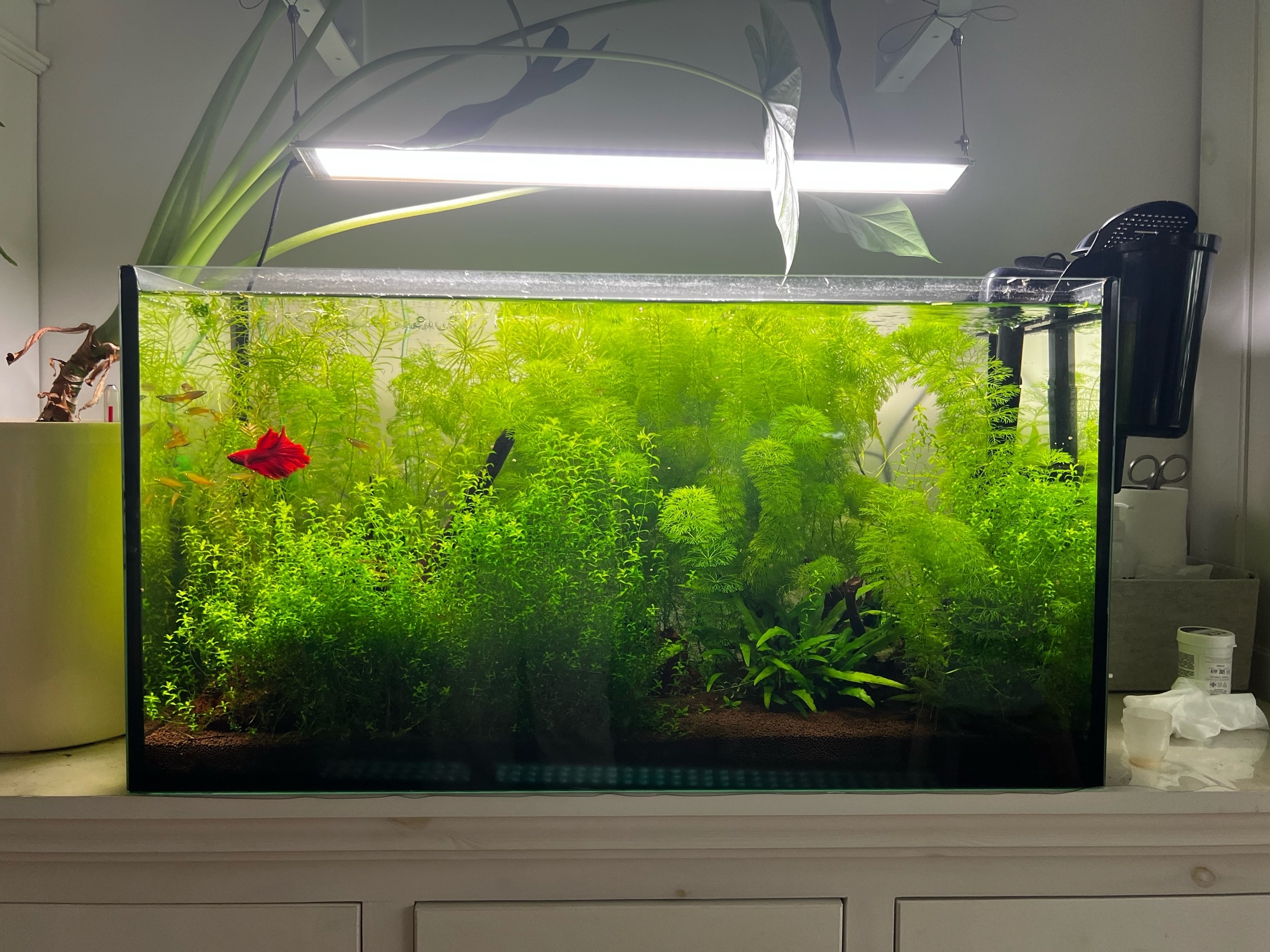 Если нет возможности тесты проводить постоянно, то лайфхак: больше растений! Рыбок не торопимся, запускаем без спешки.