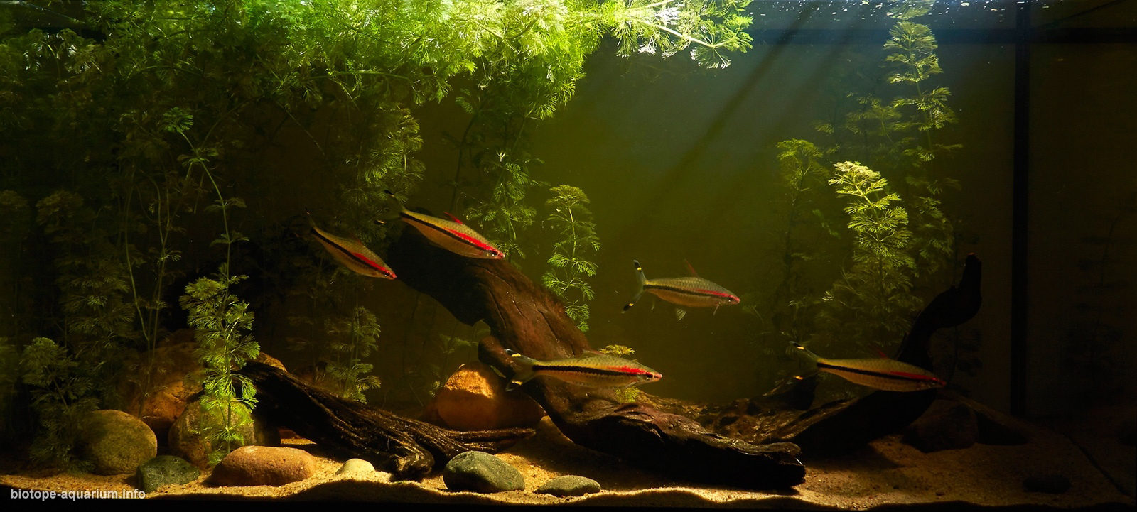 Суть биотопного аквариума заключается в подборе декора, параметров воды и населения аквариума исходя из того, как это происходит в природе. То есть мы не можем посадить в биотопный аквариум одновременно карася и африканскую тиляпию, потому что в природе так не происходит. Но можем посадить вместе, например, скалярий, тернеций, коридорасов и анциструсов, потому что они в природе вполне естественным образом пересекаются. Такие же правила касаются и растений, это чуть сложнее, но в век интернета несложно найти необходимую информацию.