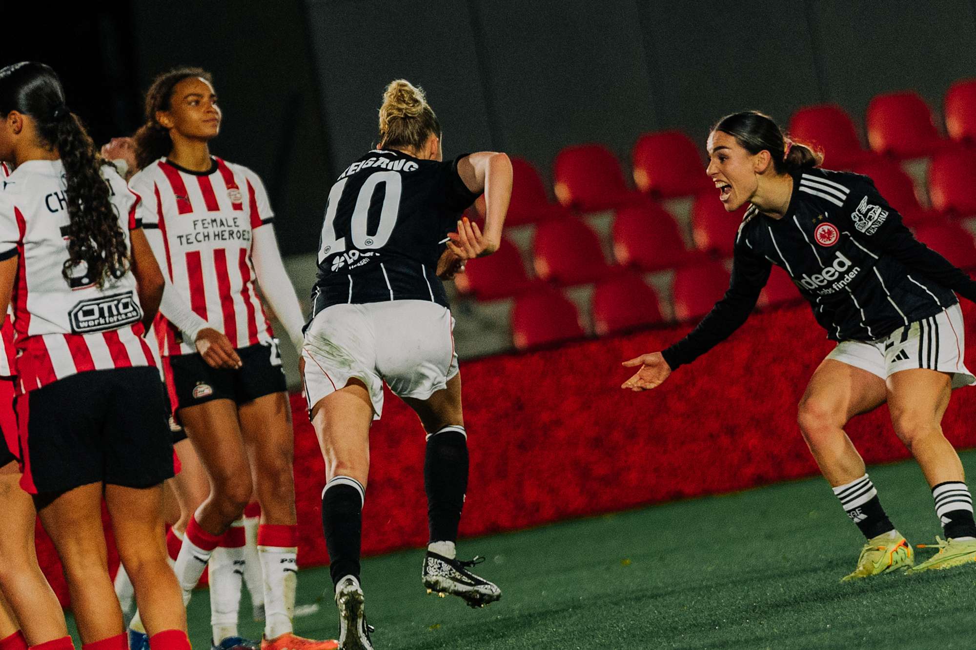 В перерыве была сделана замена - вместо немного хромавшей и вдобавок получившей жёлтую карточку Хейли Расо вышла Эрелета Мемети. «Айнтрахт» продолжил наседать на ворота «ПСВ», дважды за буквально несколько минут проверив оборону голландской команды. Последняя всё больше стала играть «на вынос», вдобавок на последние 15 минут Нико Арнаутис выпустил Ремину Чибу и Ярне Тёлингс. Наконец, на 85 минуте это дало свои плоды: после всех своих страданий Фрайганг всё-таки забила - головой переправила мяч под перекладину. «Айнтрахт» почувствовал кровь и уже через каких-то 5 минут дожал «ПСВ». Снова прекрасно сыграла Тёлингс, вырезав идеальную передачу на голову Чибе.