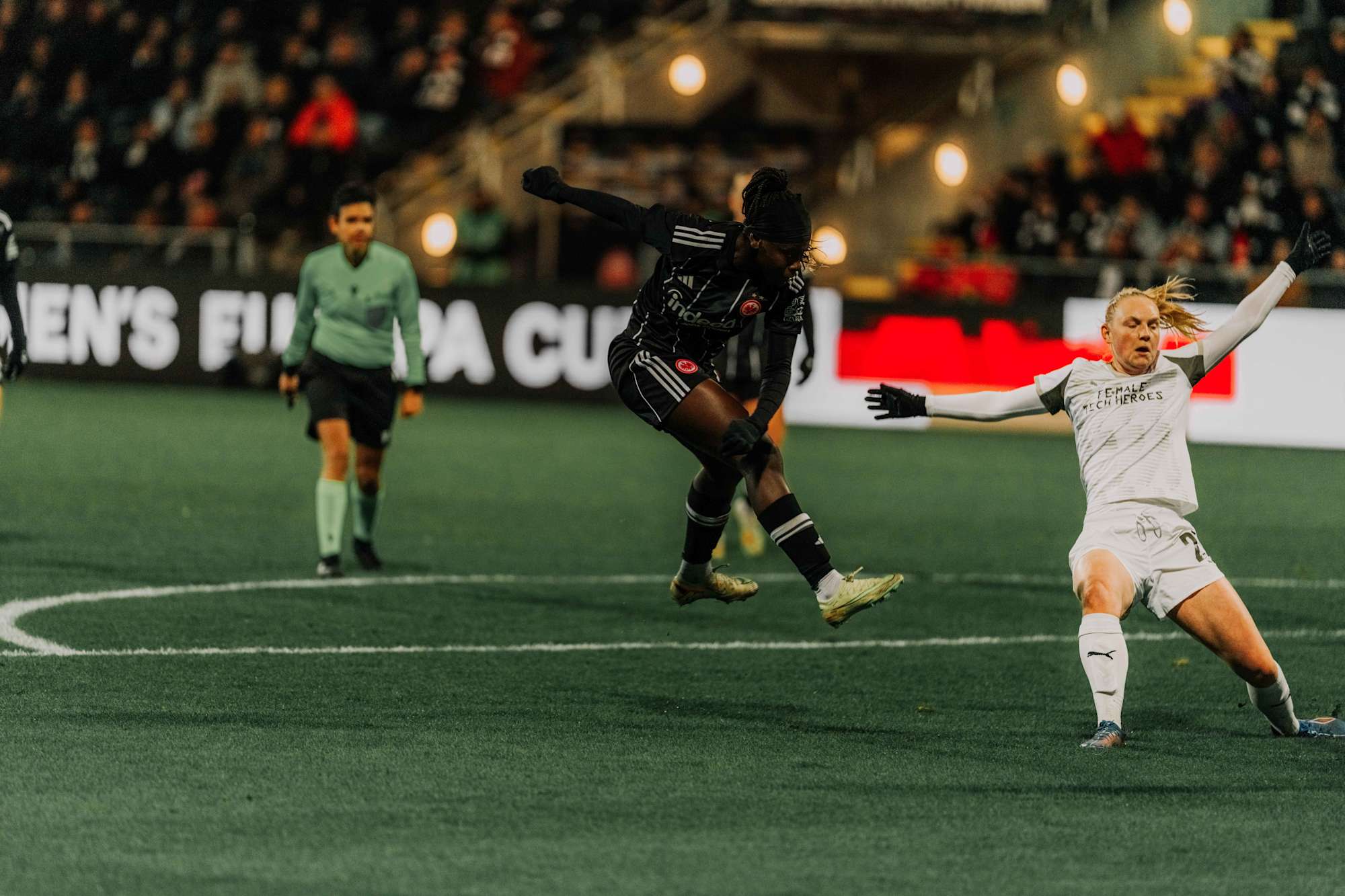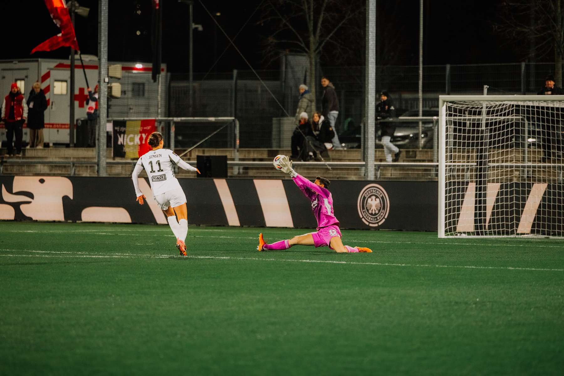 Немецкий клуб выглядел лучше, но первыми забили хозяйки. Лисанн Граве не очень хорошо обработала мяч, после чего выскочившая у неё из-за спины Нина Нейстад легко обыграла Ноэми Ивели и после обратного паса от Риолы Джемайли пробила в дальний угол. Голкипер «Айнтрахта» спасла свою команду, но мяч отлетел прямо в ноги Лоре Якобс. Последняя относительно легко прошила Лину Альтенбург, забив свой четвёртый гол в сезоне.