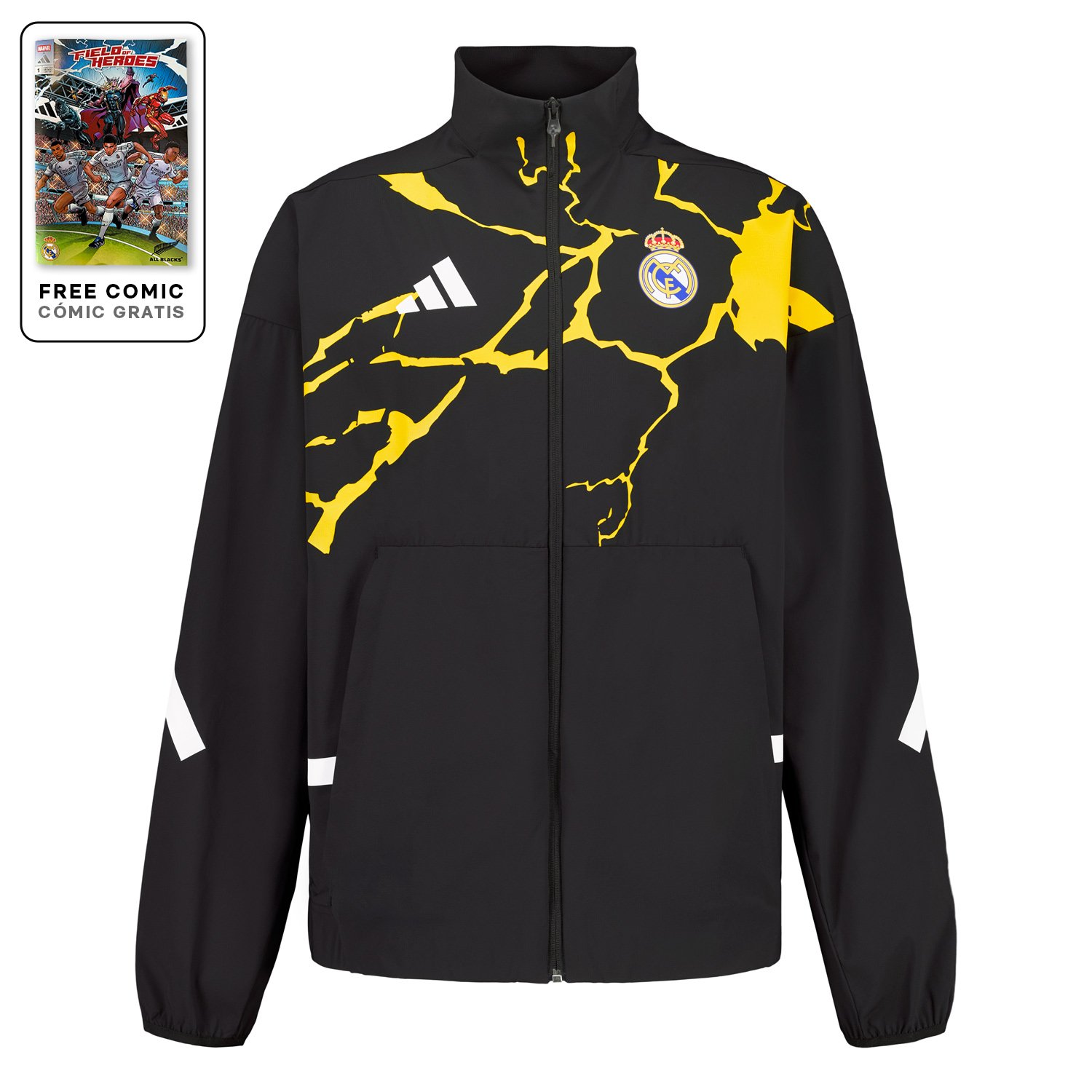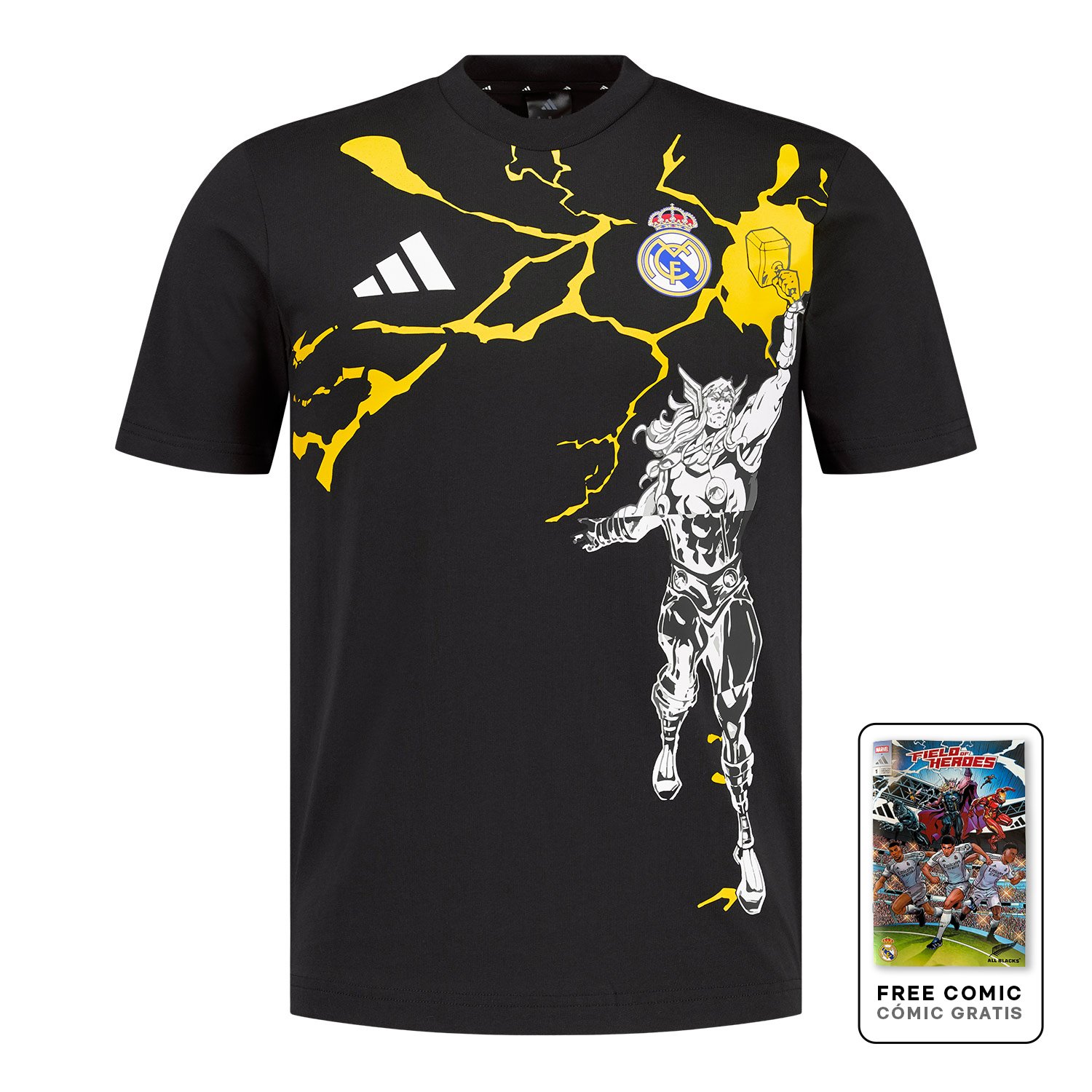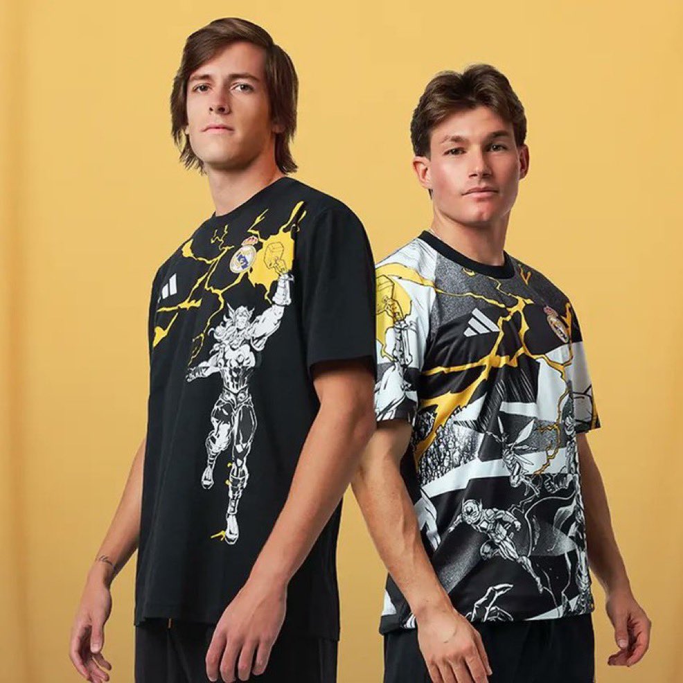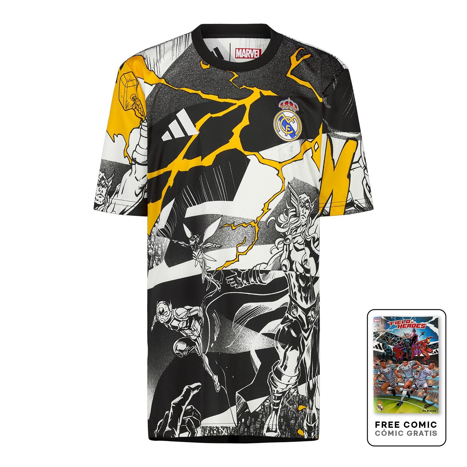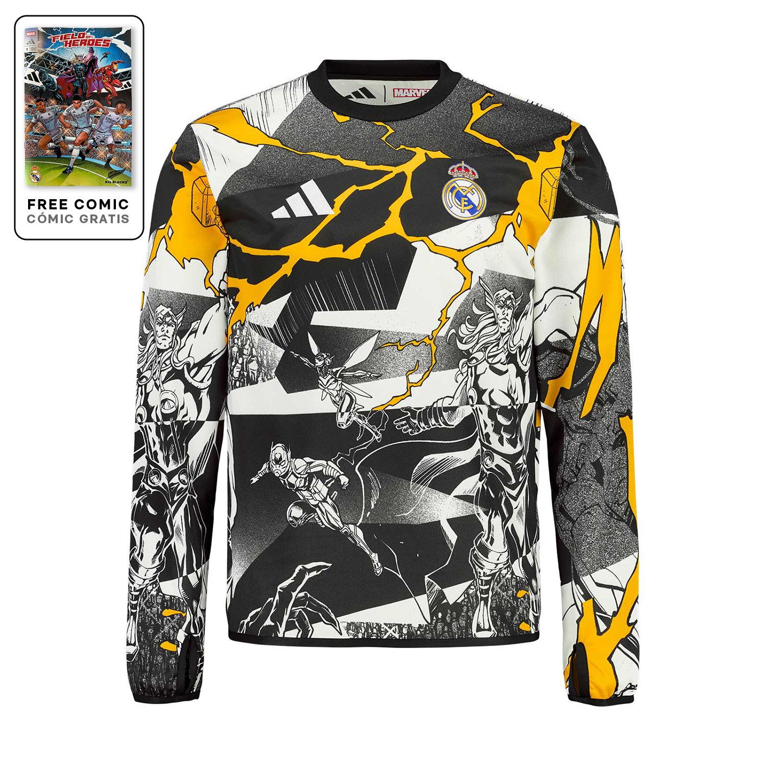 «Мадрид» продолжает сотрудничество с одним из крупнейших издателей комиксов – Marvel. Ноябрьскую коллекцию для «королевского клуба» Adidas посвятил Тору, основной элемент дизайна – ярко-оранжевые молнии.