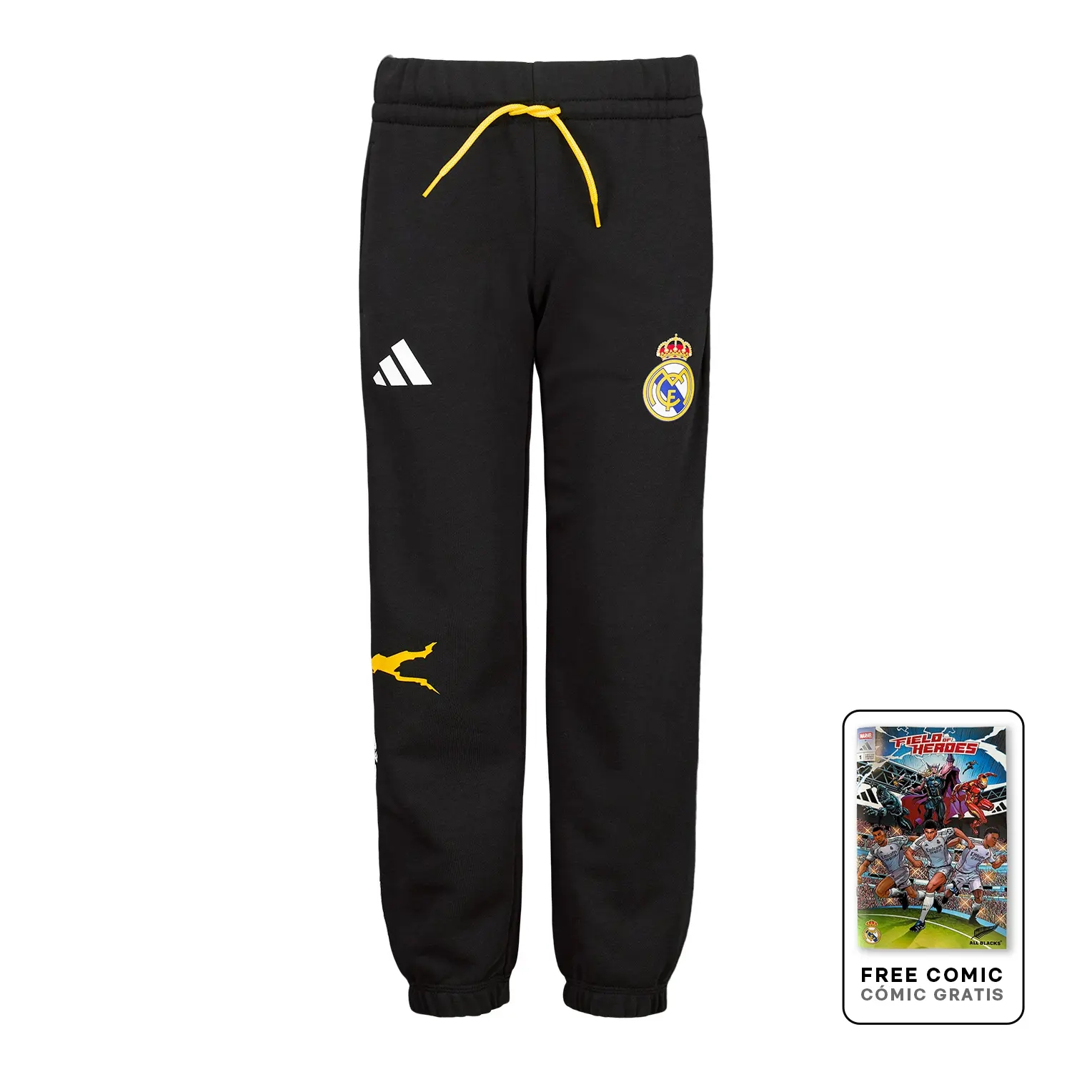 В капсульную коллекцию вошли: предматчевая кофта, футболки в разной расцветке, а также штаны, худи и шорты. При заказе вещи из коллекции болельщики получат комикс о приключениях супергероев с футболистами «Мадрида».