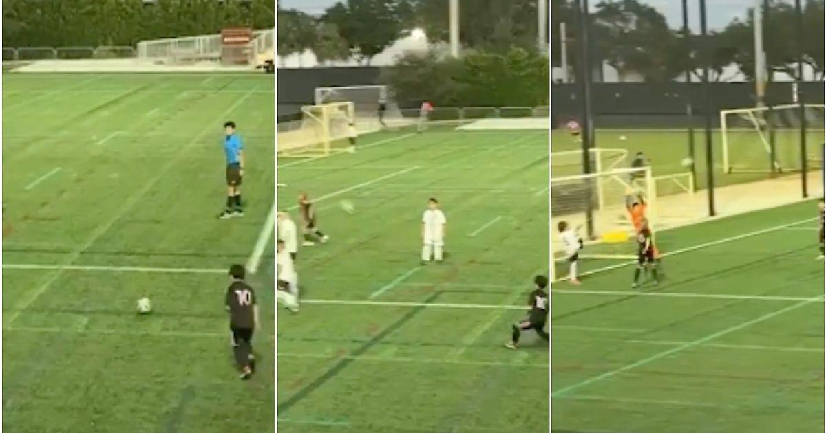 Мальчик играет за детскую команду «Интер Майами» U8, где, несмотря на возраст, имеет право пробивать штрафные удары. Случилось то, на что все и рассчитывали – фирменный удар отца по высокой дуге.