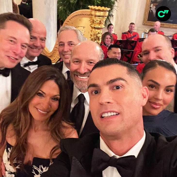 Общего фото Роналду и Трампа пока нет. Но португалец сделал фото для сопредседателя из совета консультантов президента США по науке и технологиям Дэвида Сакса: тот выложил селфи с Криштиану, его спутницей Джорджиной Родригес, предпринимателем Илоном Маском и президентом ФИФА Джанни Инфантино.