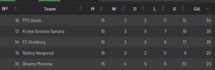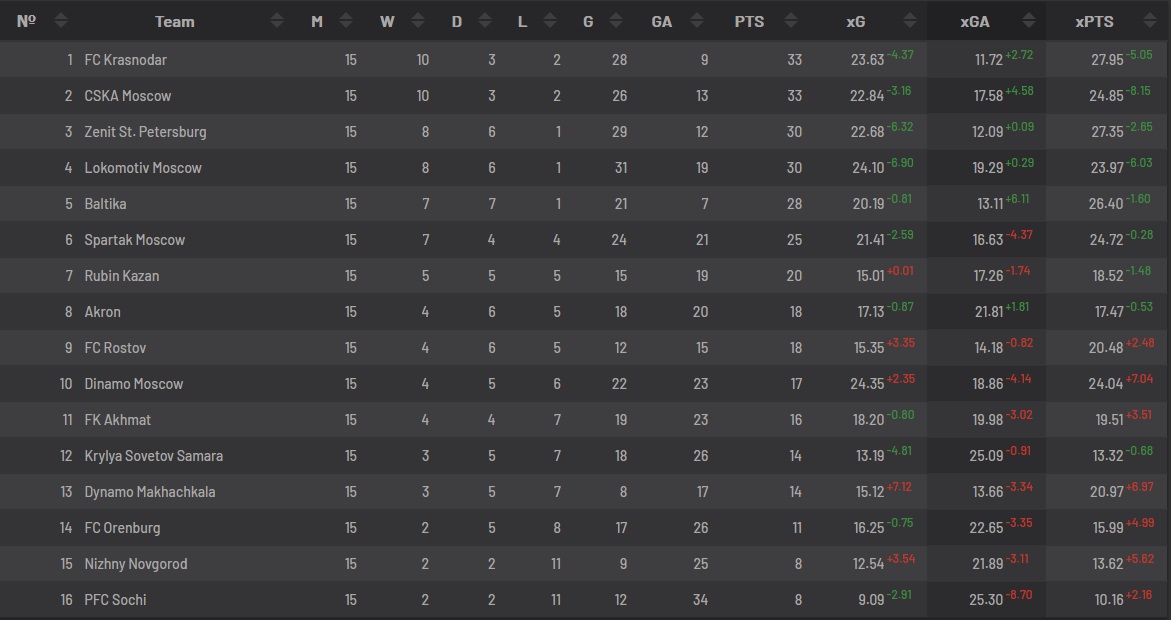 Жаль мы не увидим в ближайшем будущем Динамо, потому что было бы интересно как Валерий Георгиевич вытаскивал Динамо со дна турнирной таблицы, и перестраивал игру в обороне, но если смотреть сугубо на статистику ожидаемых забитых пропущенных голов и очков, то можно с уверенностью сказать, что Динамо Карпина был не так плох, как может показаться, взглянув на турнирную таблицу первого круга.